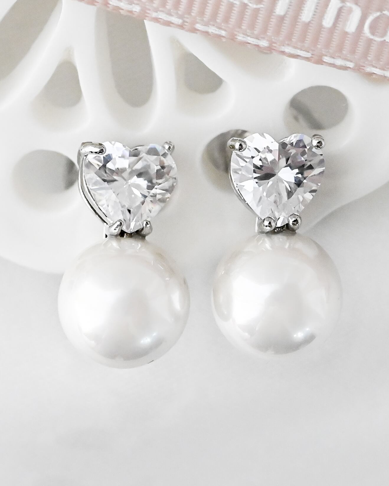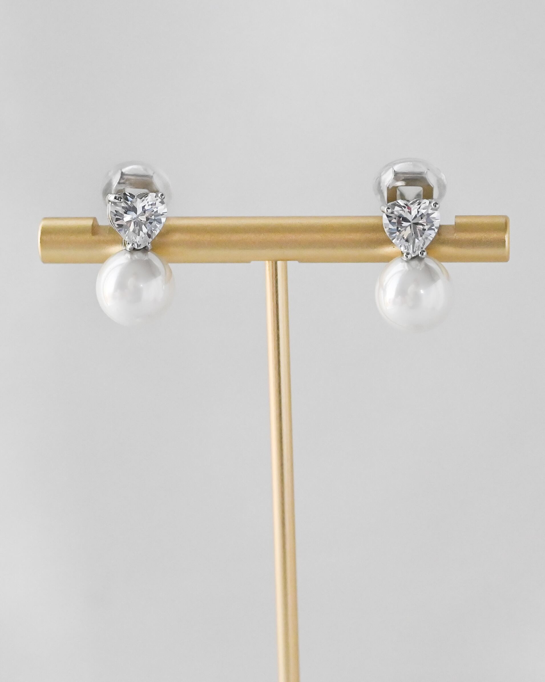 ハート型のビジューに、パールを組み合わせた上品で可憐なイヤリング。