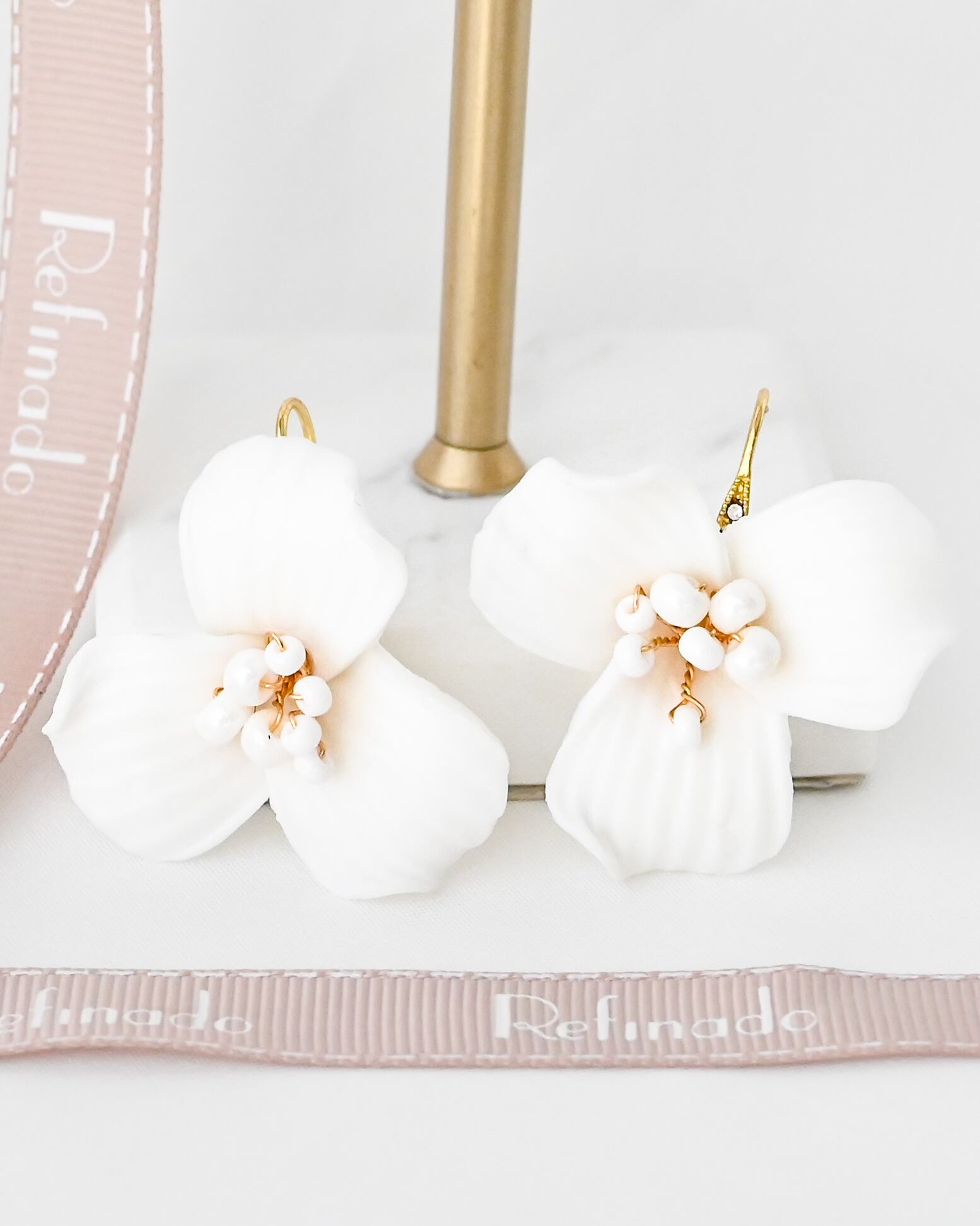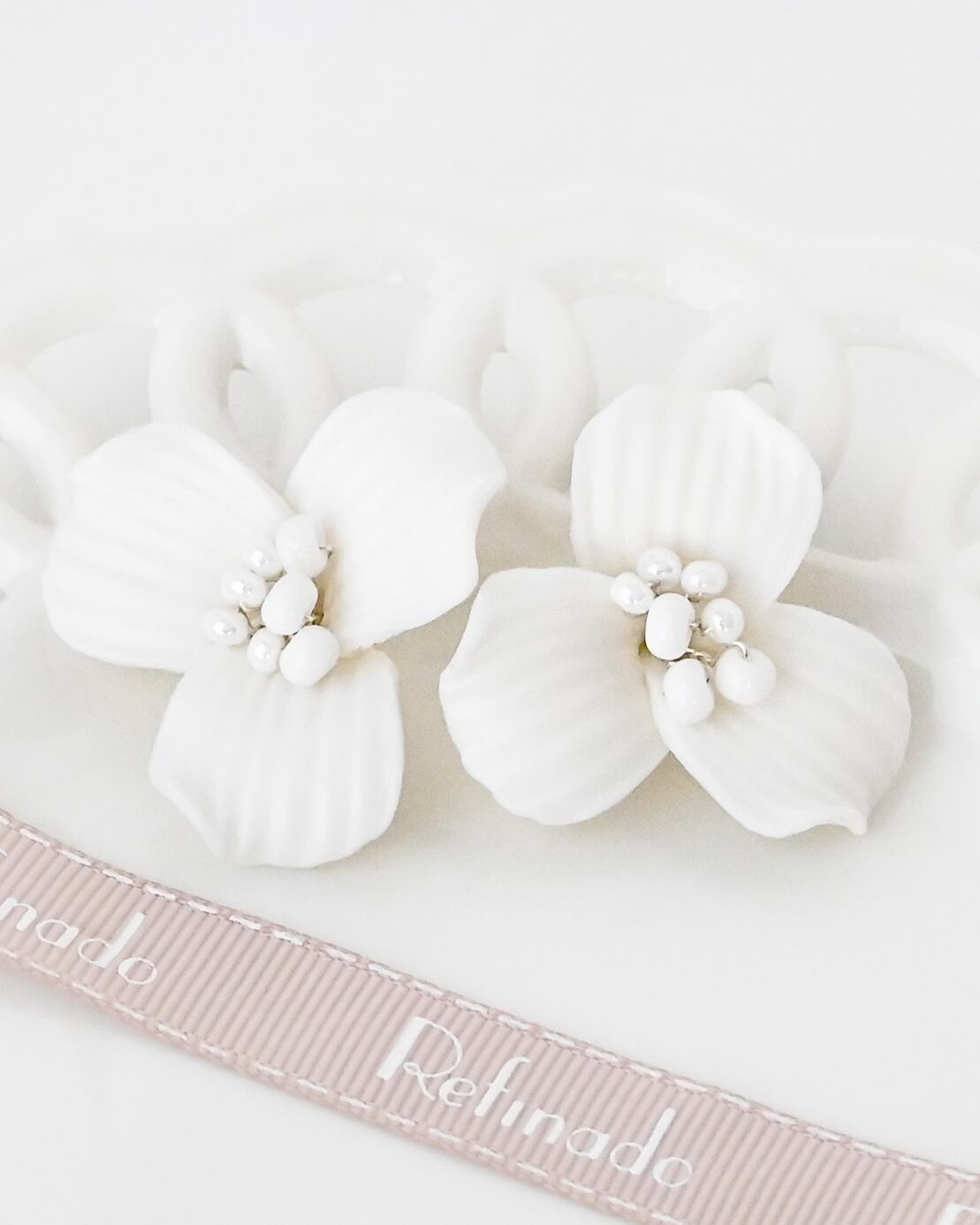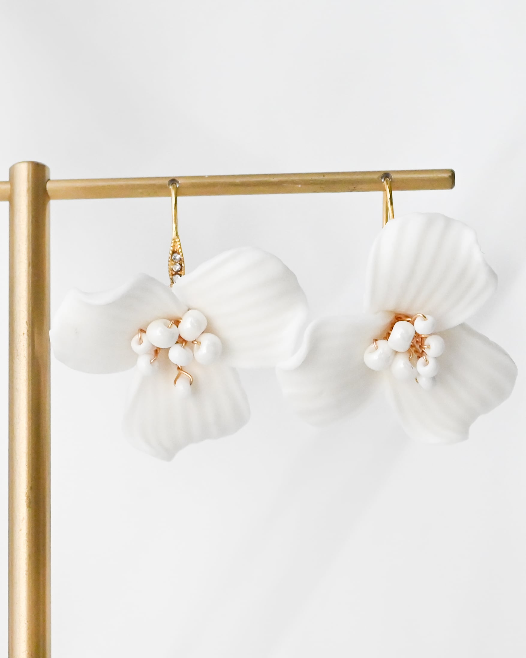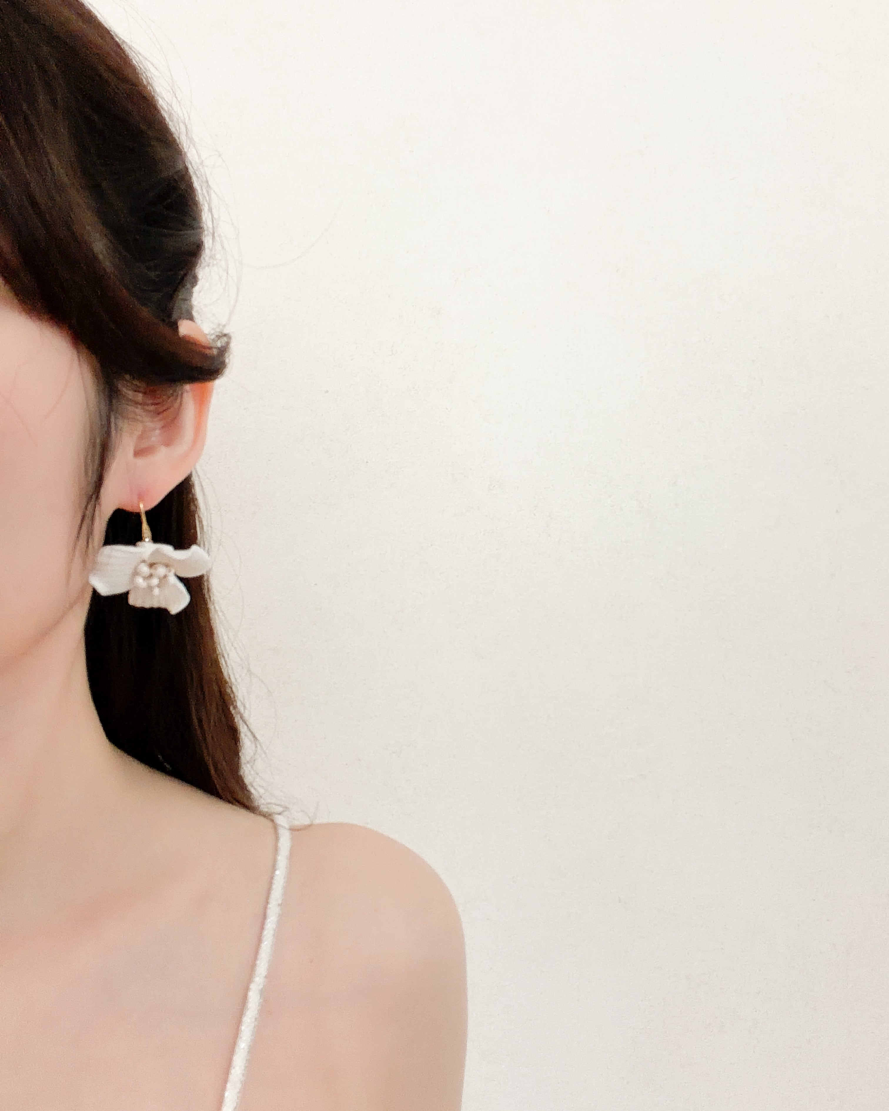 立体的に仕上げた花びらが耳元に自然な華やかさを添え、動くたびに優しく揺れて軽やかな印象に。