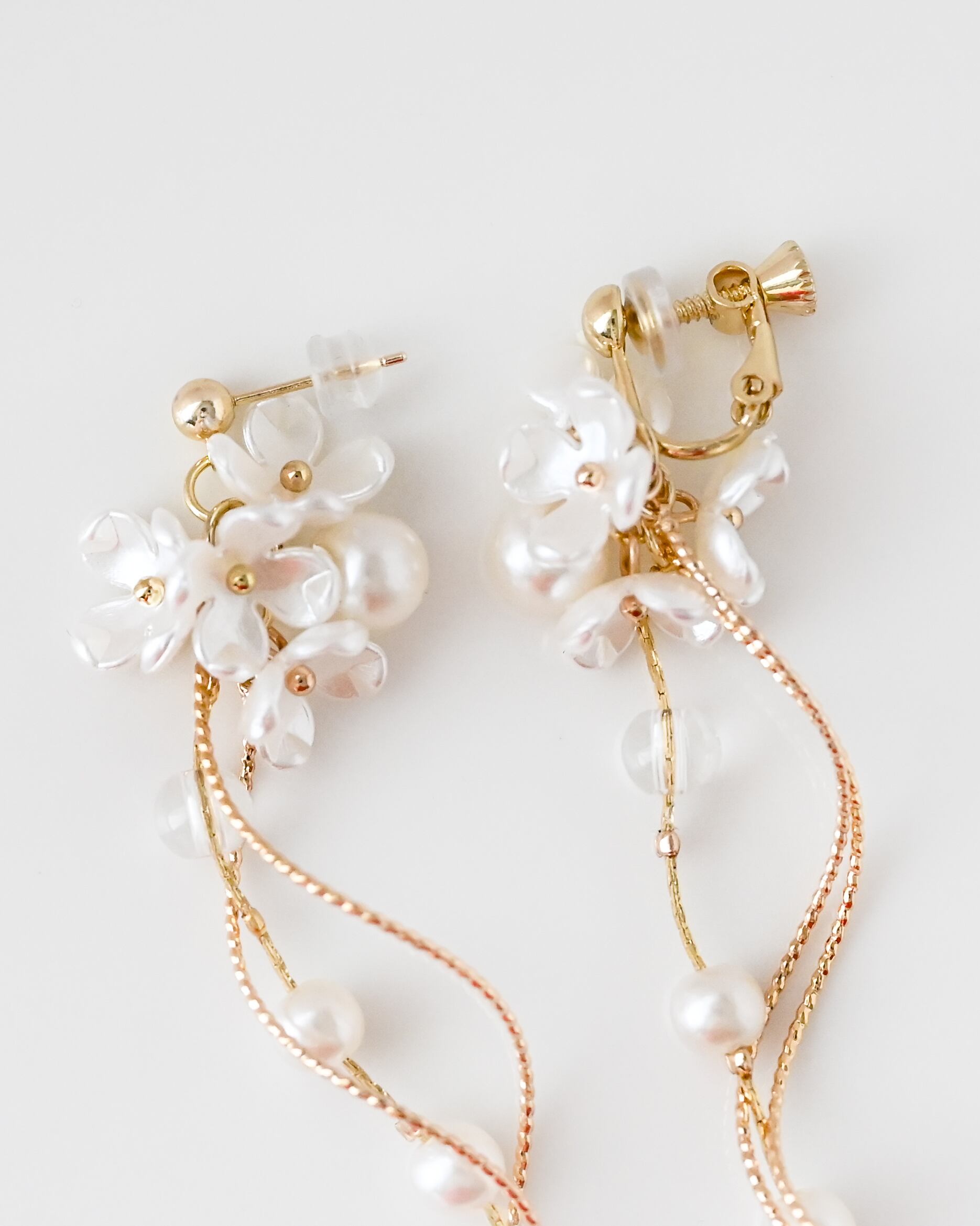 フラワーパールブライダルイヤリング / ピアス【AE2604-32】