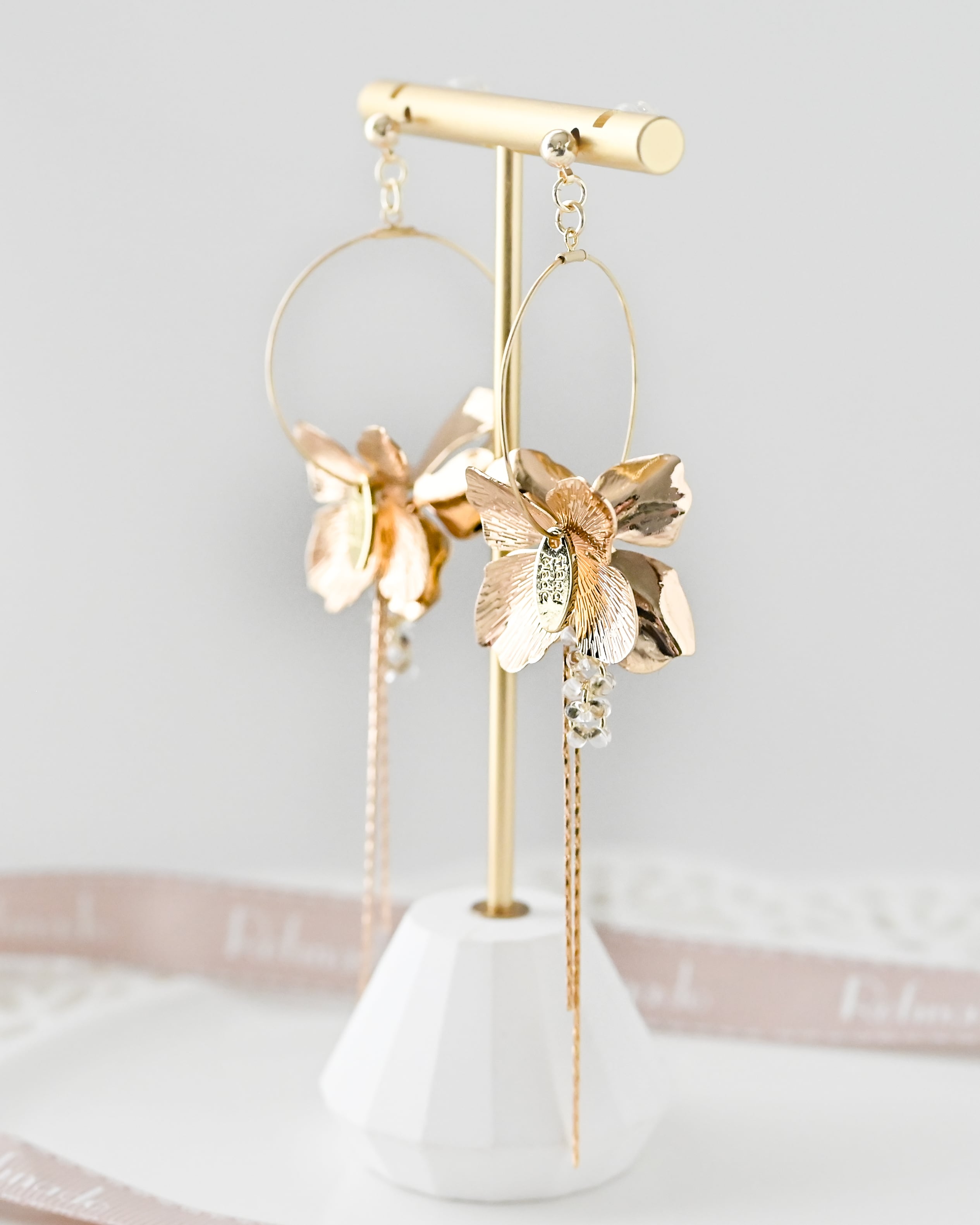 ゴールドフラワーフープブライダルイヤリング / ピアス【AE2604-33】