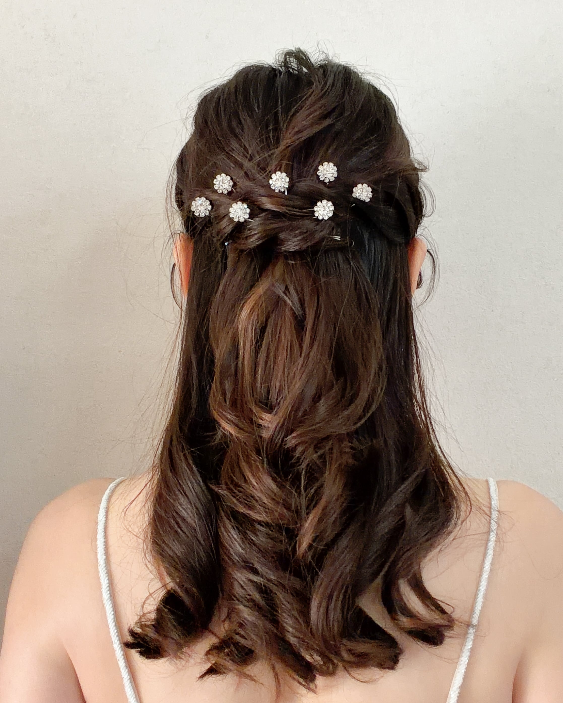 Uピンタイプのため、バランスを見ながら自由に配置でき、ハーフアップ・シニヨン・ダウンスタイルなど幅広いアレンジに対応。
