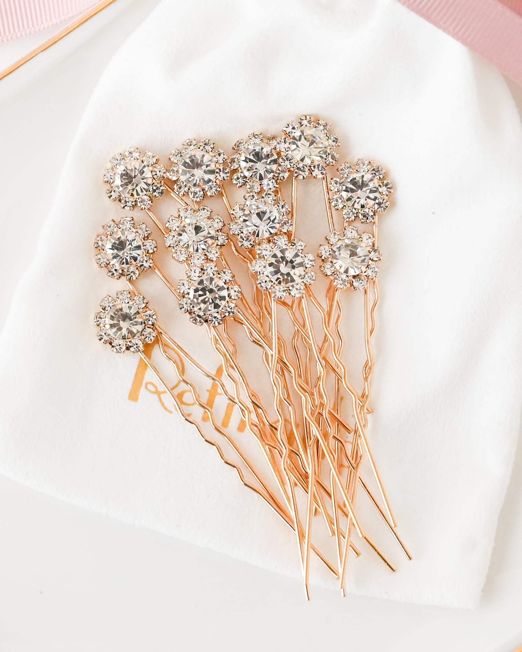 繊細に輝くビジューをあしらった、上品で使いやすいヘアピン12本セット。