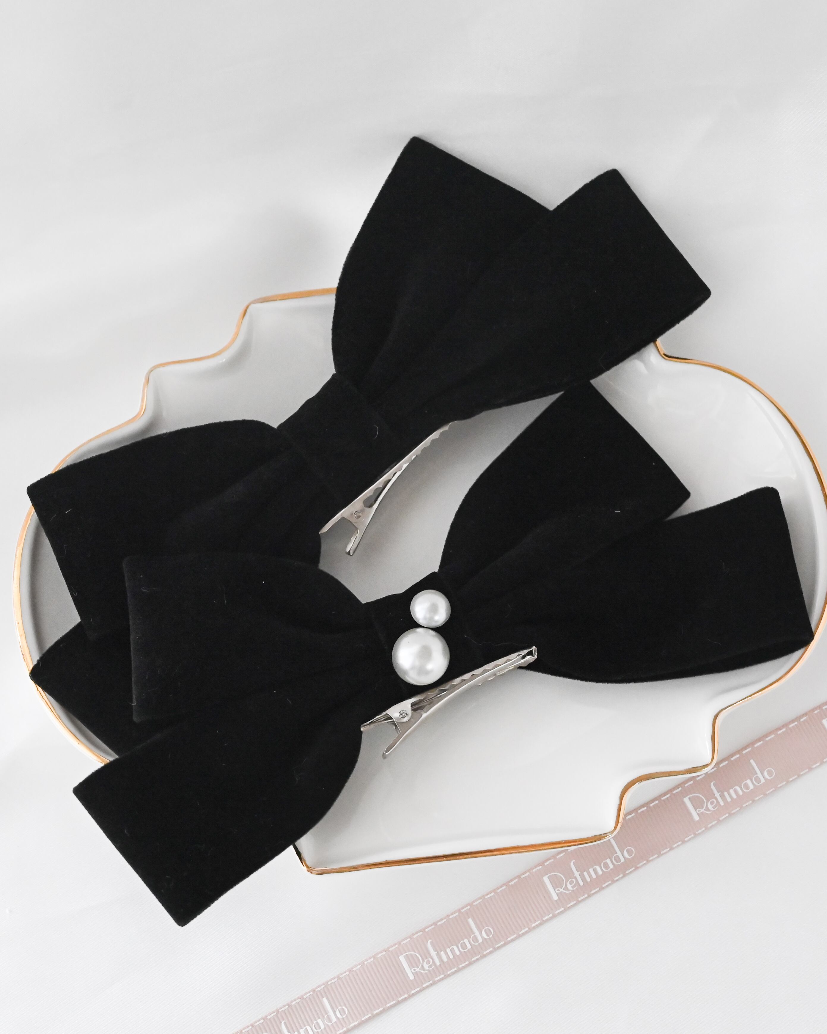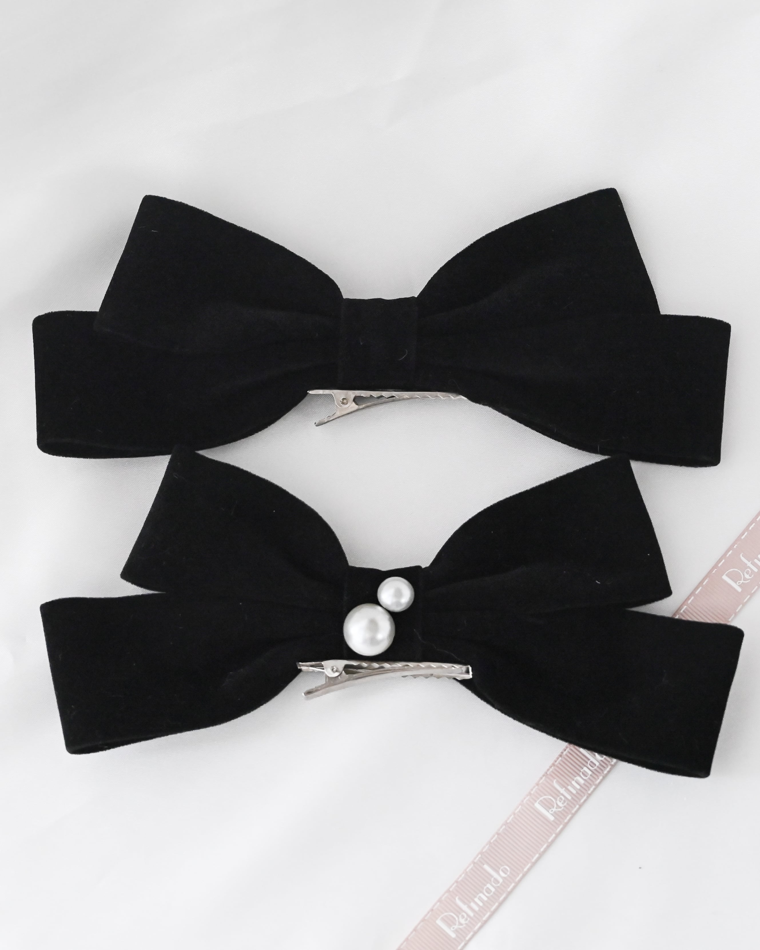 上品なベルベット調素材のリボンヘアアクセサリー。