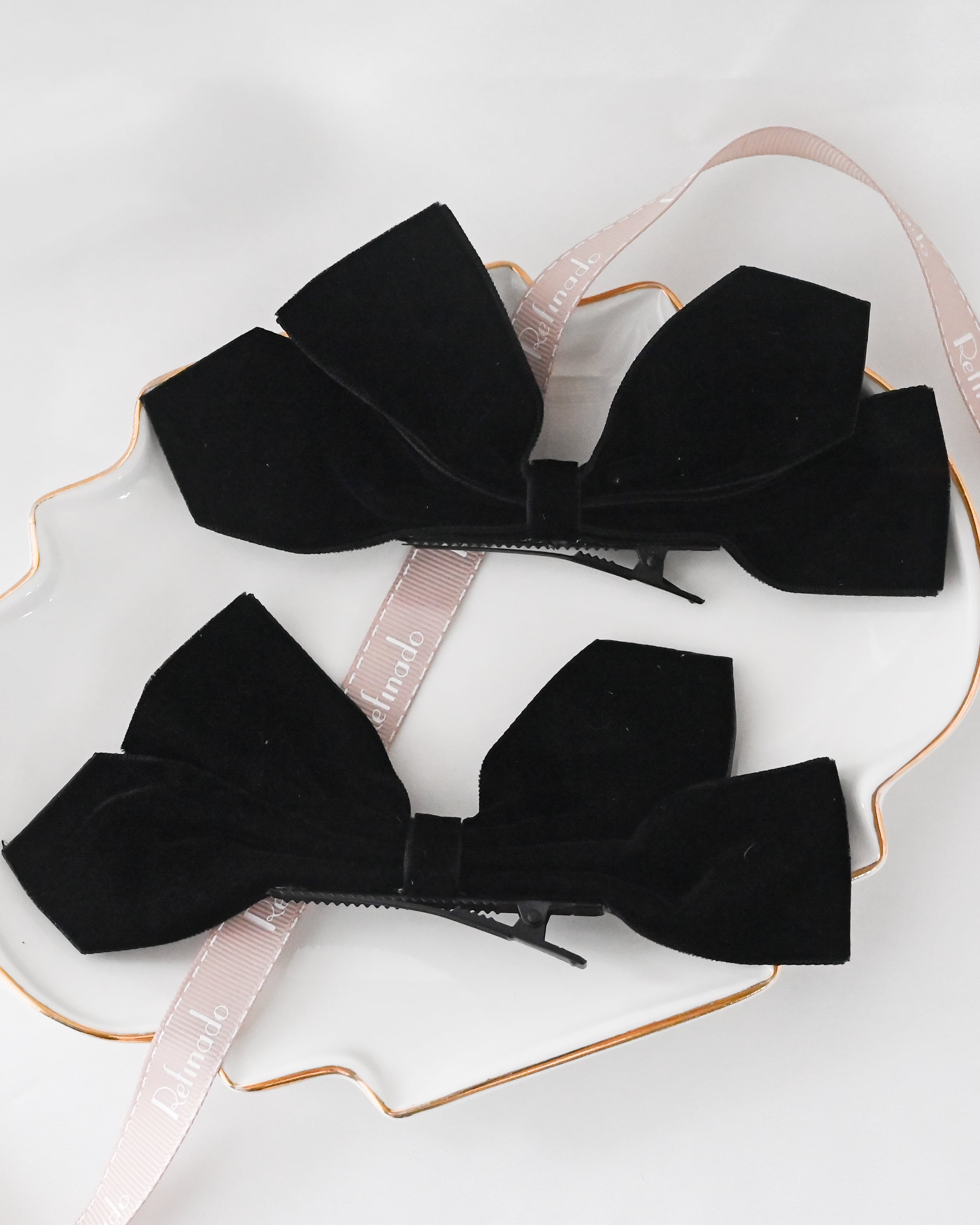 上品なベルベット調素材のリボンヘアアクセサリー2点セット。