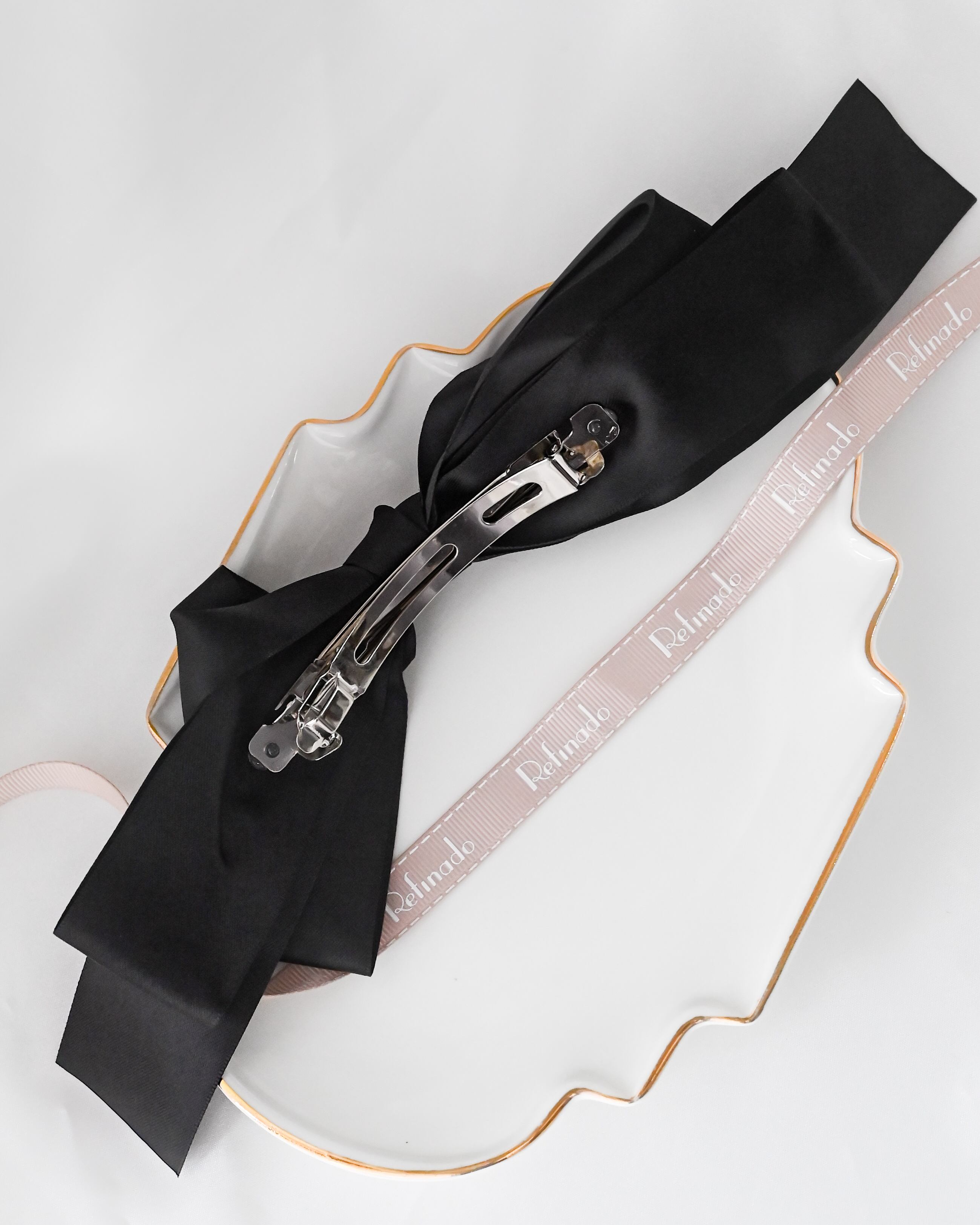 上品なサテン素材を使用したリボンヘアアクセサリー。
