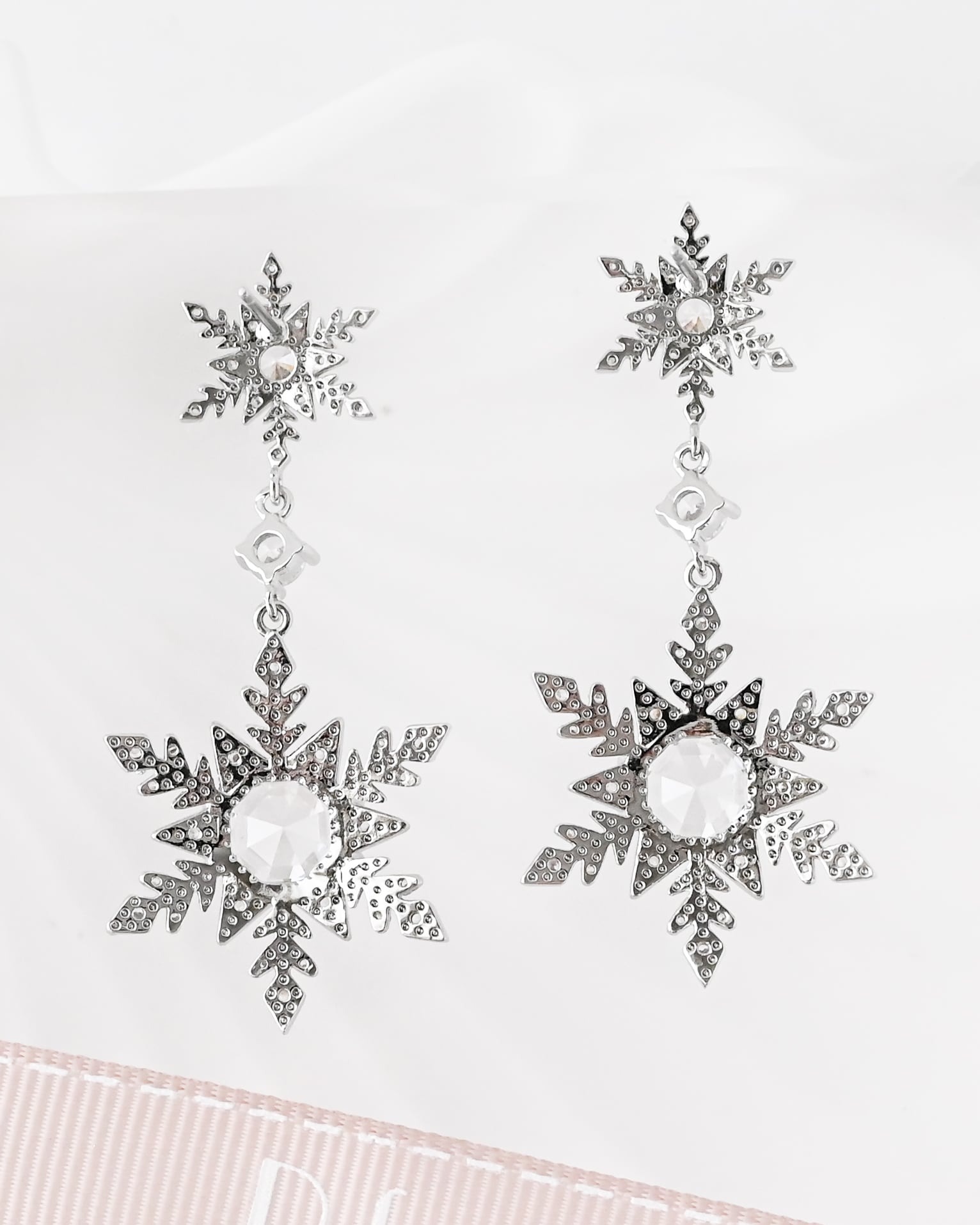 繊細にきらめく雪の結晶をモチーフにした、存在感のあるロングピアス。