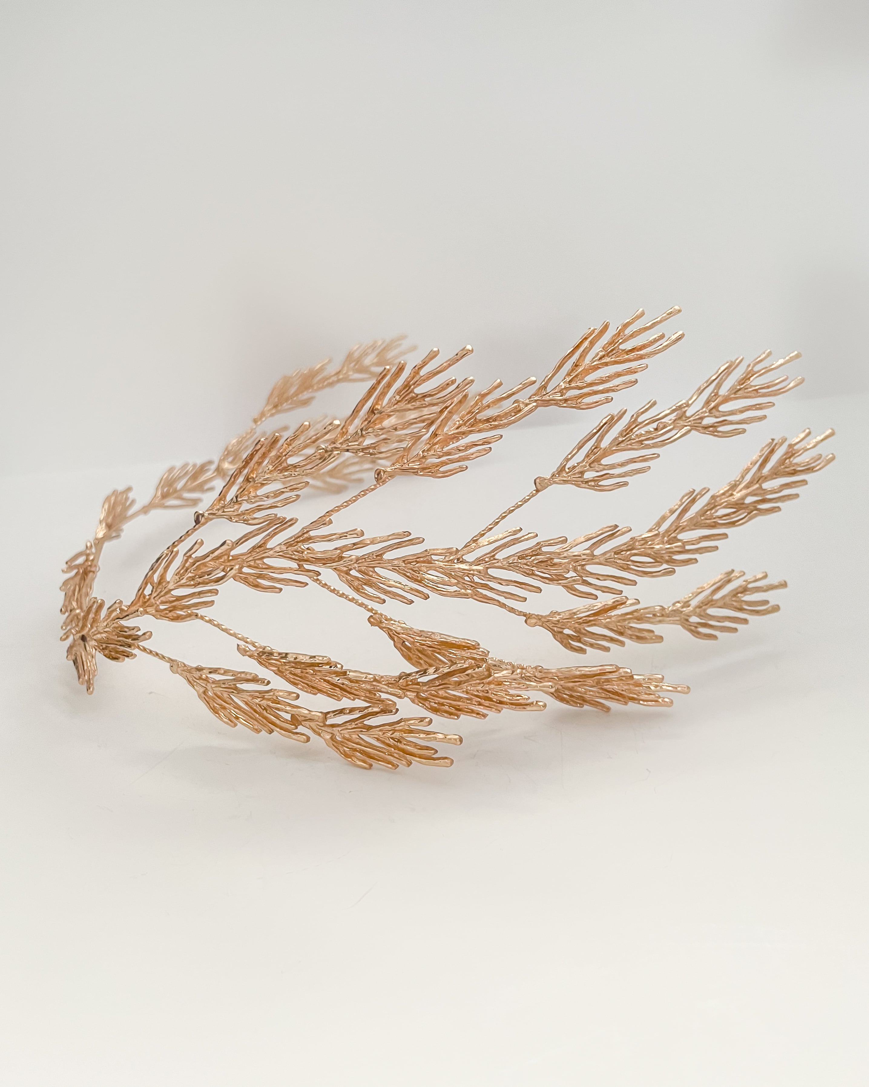 松をイメージしたボタニカル調のヘッドドレスは左右がアシメトリにデザインされ、メリハリ感のあるスタイリッシュなアイテムです。