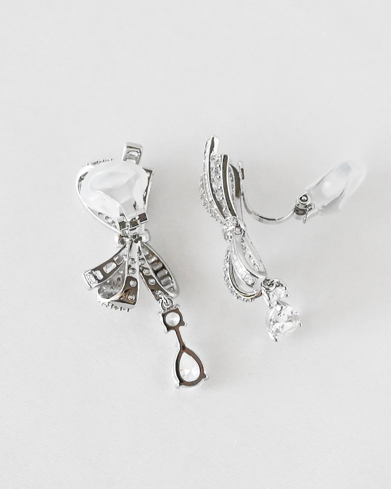 華奢で繊細なリボンがなんとも愛らしい雰囲気のブライダルピアス。