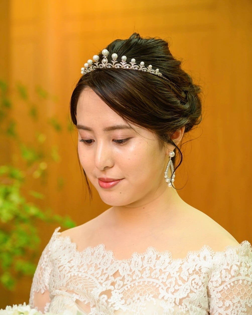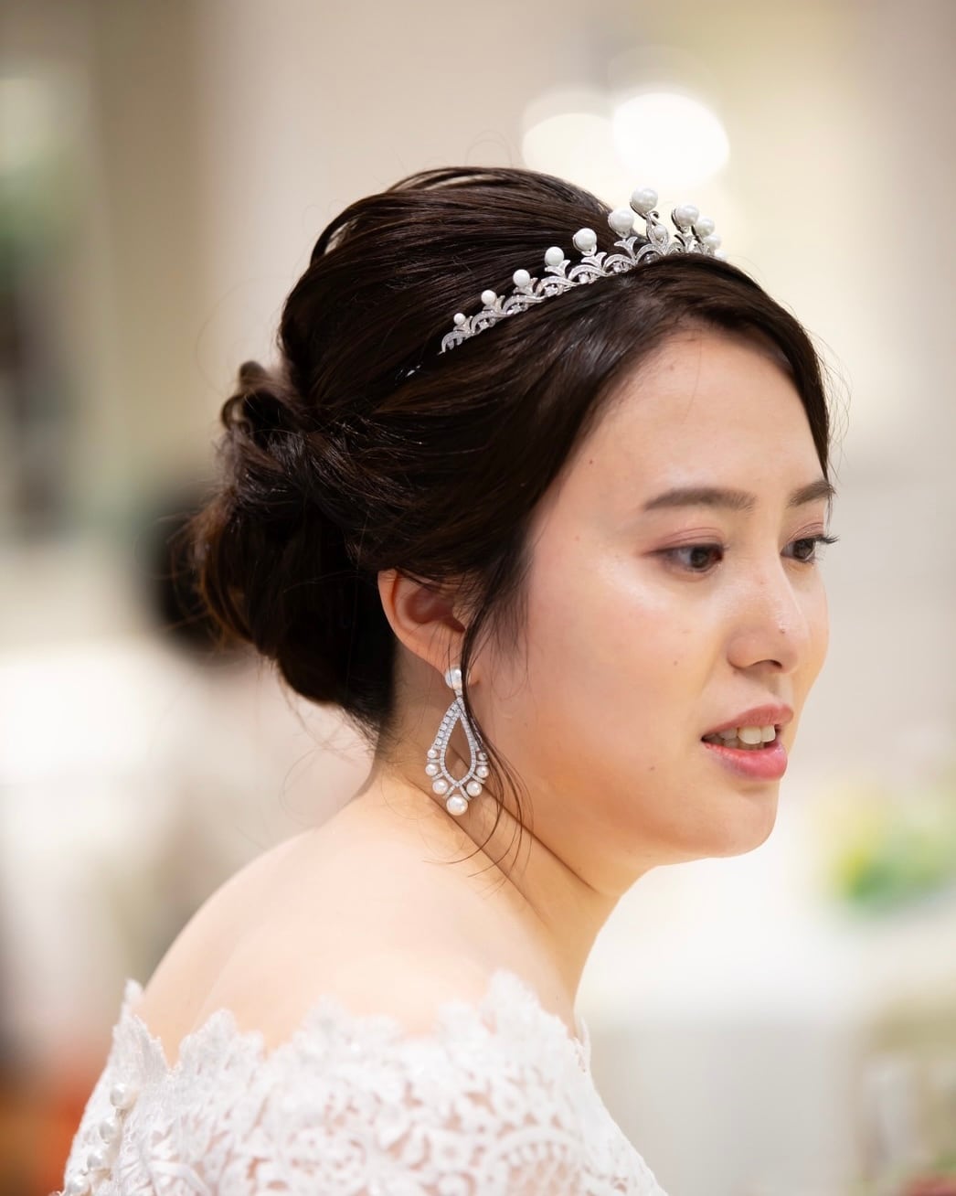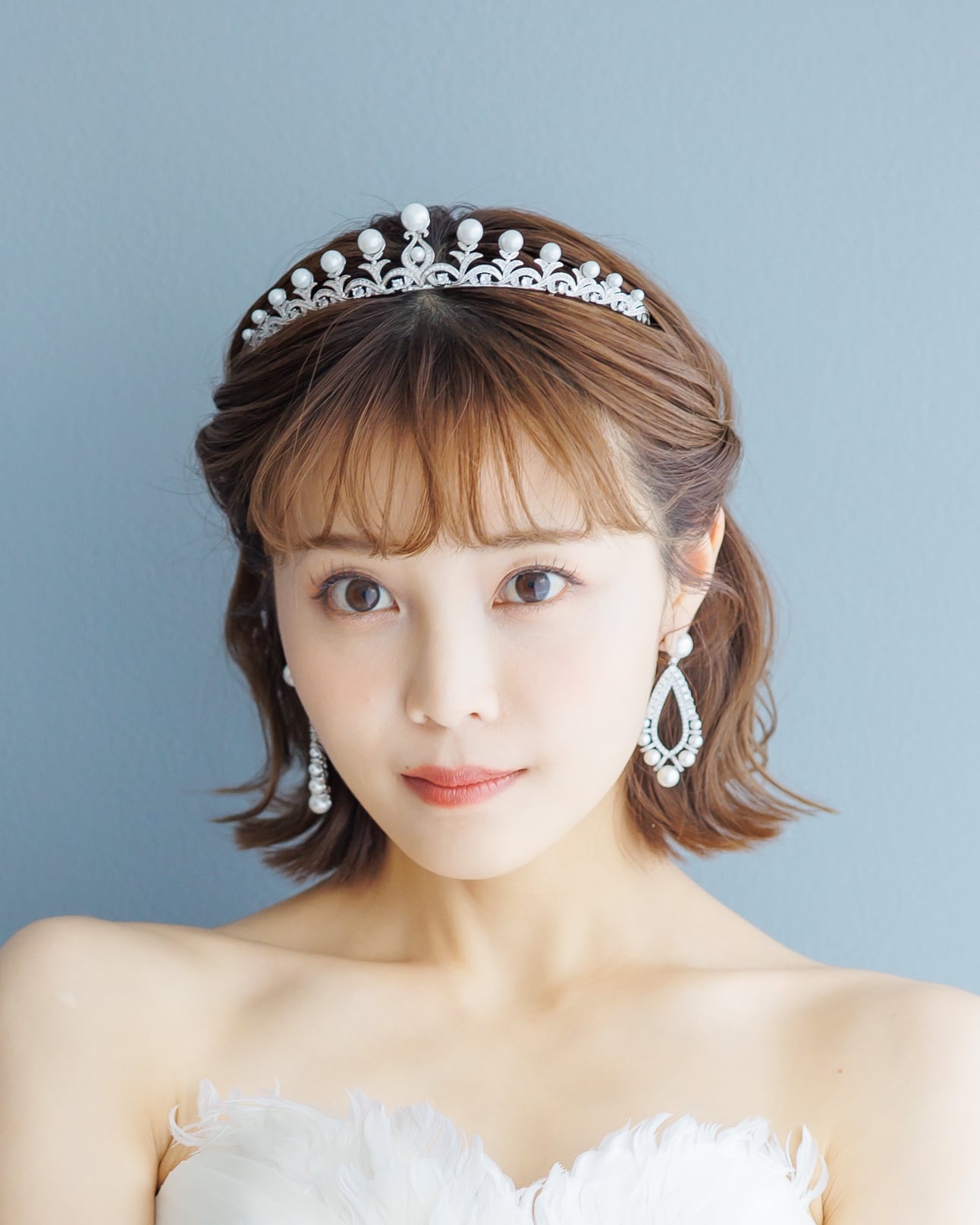 パールをお花に見立てた遊び心感じさせるエレガントさと愛らしさを兼ね揃えたティアラ。