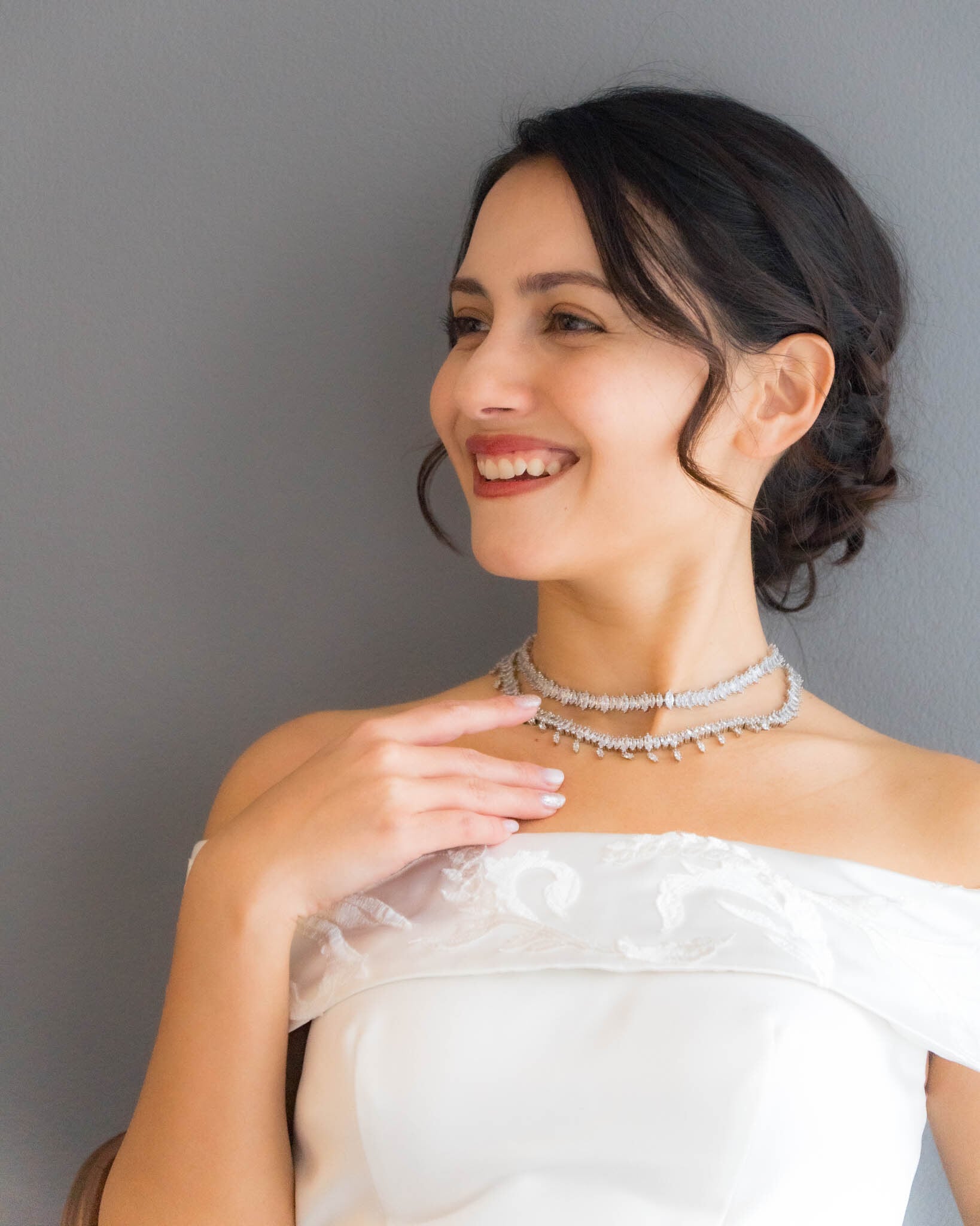 長さを調整することができ、チョーカーとしてもお使いいただけて、重ねつけすることでワンランク上の華やかでラグジュアリーなスタイルをお楽しみいただけます。