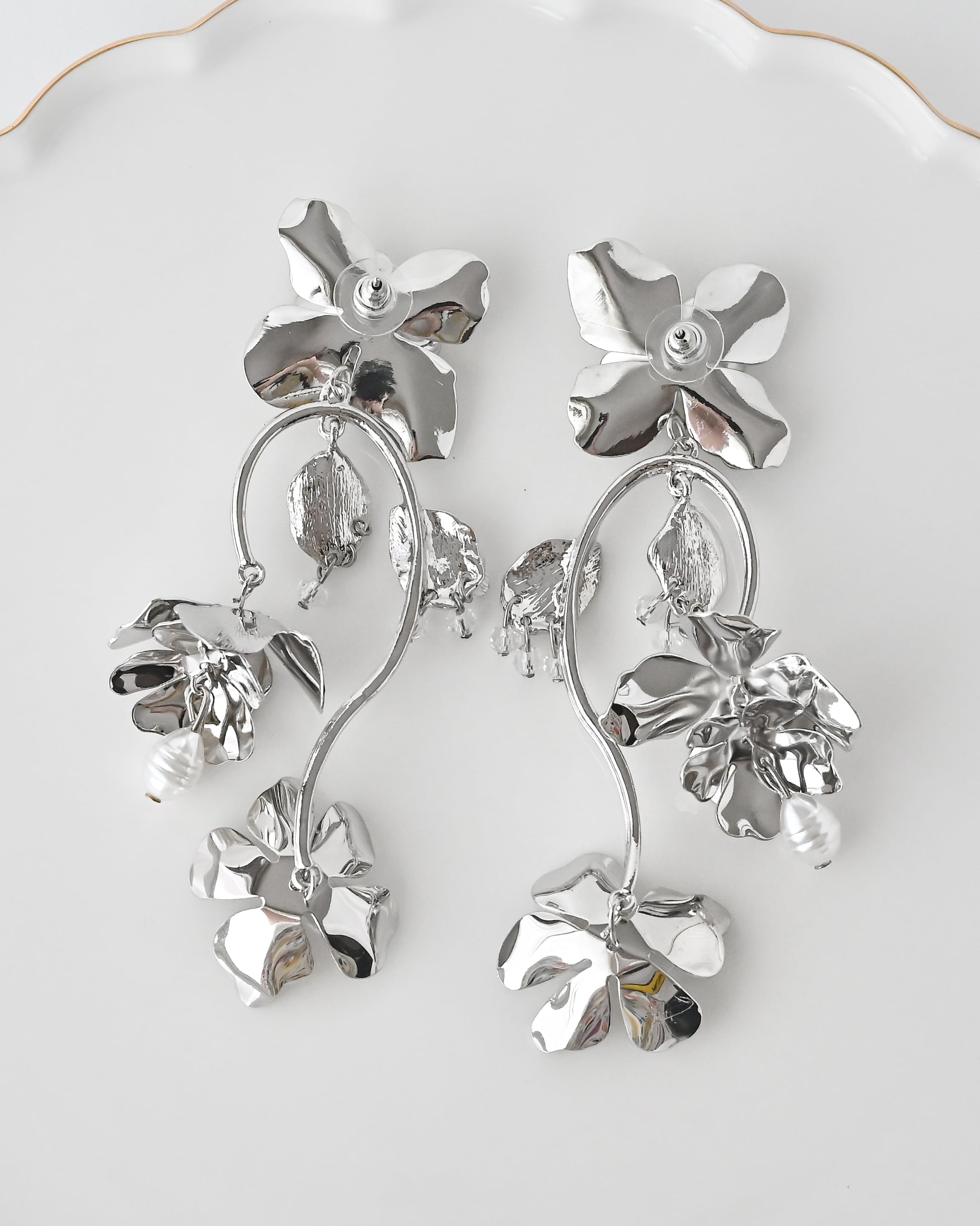 トレンド感がありながらもパールの花芯がエレガントさをプラスし、動く度に揺れるお花がメリハリあるデザインに!