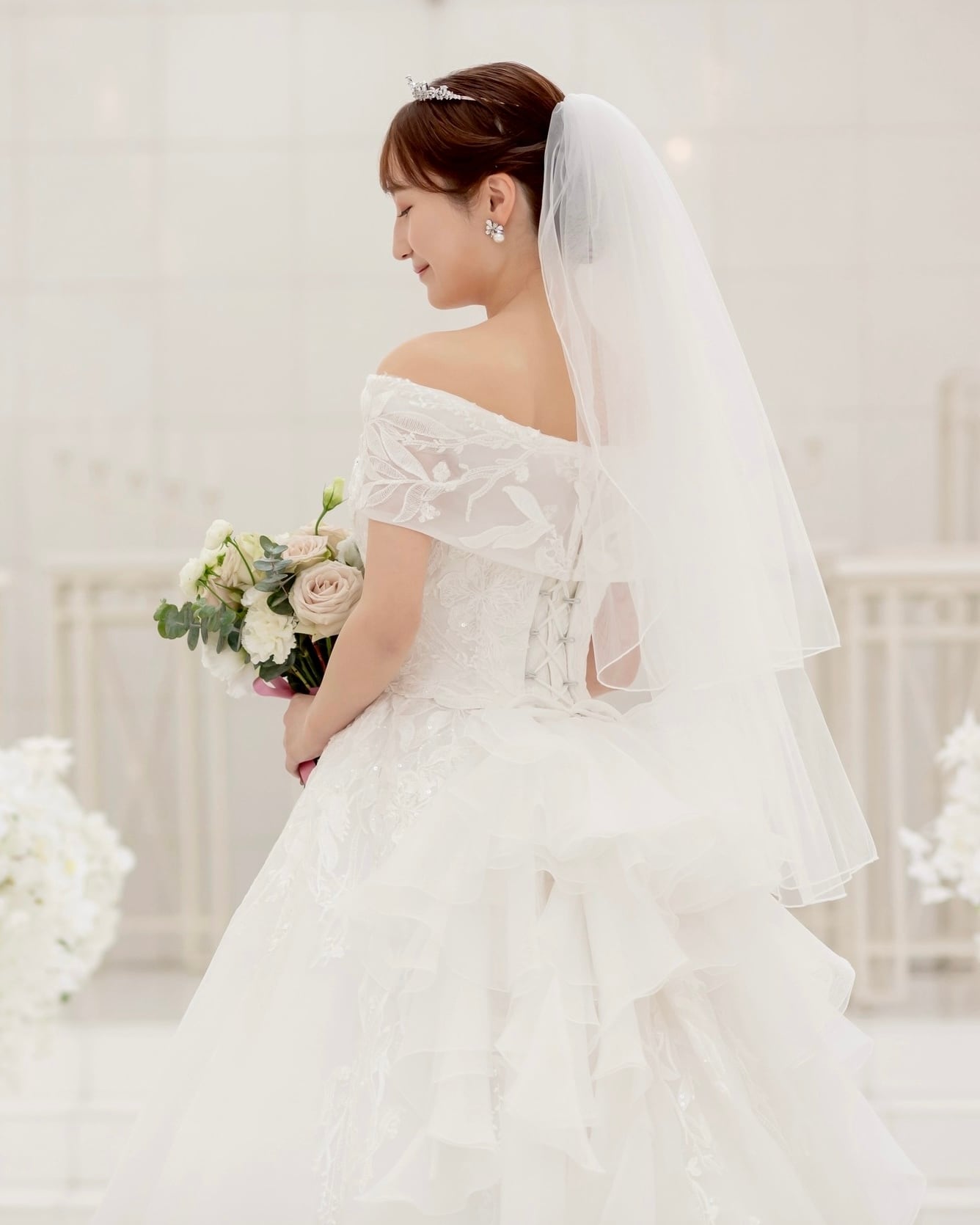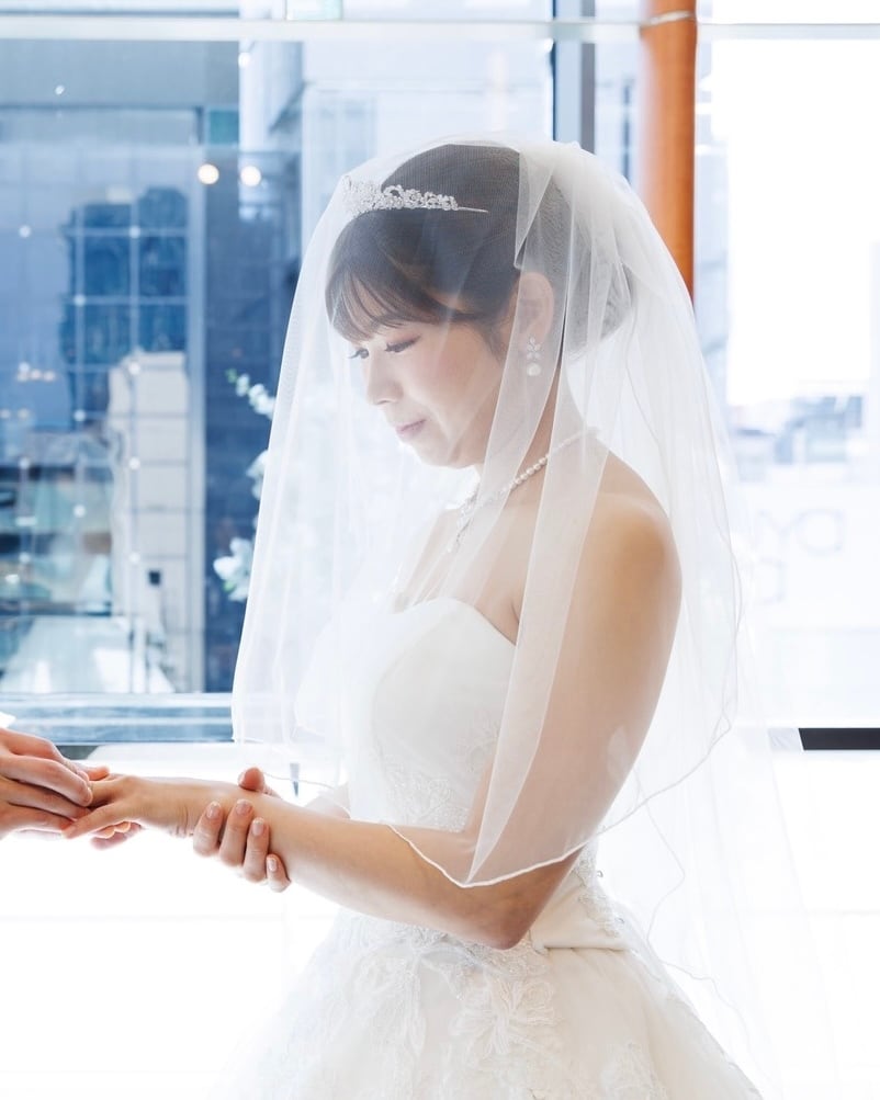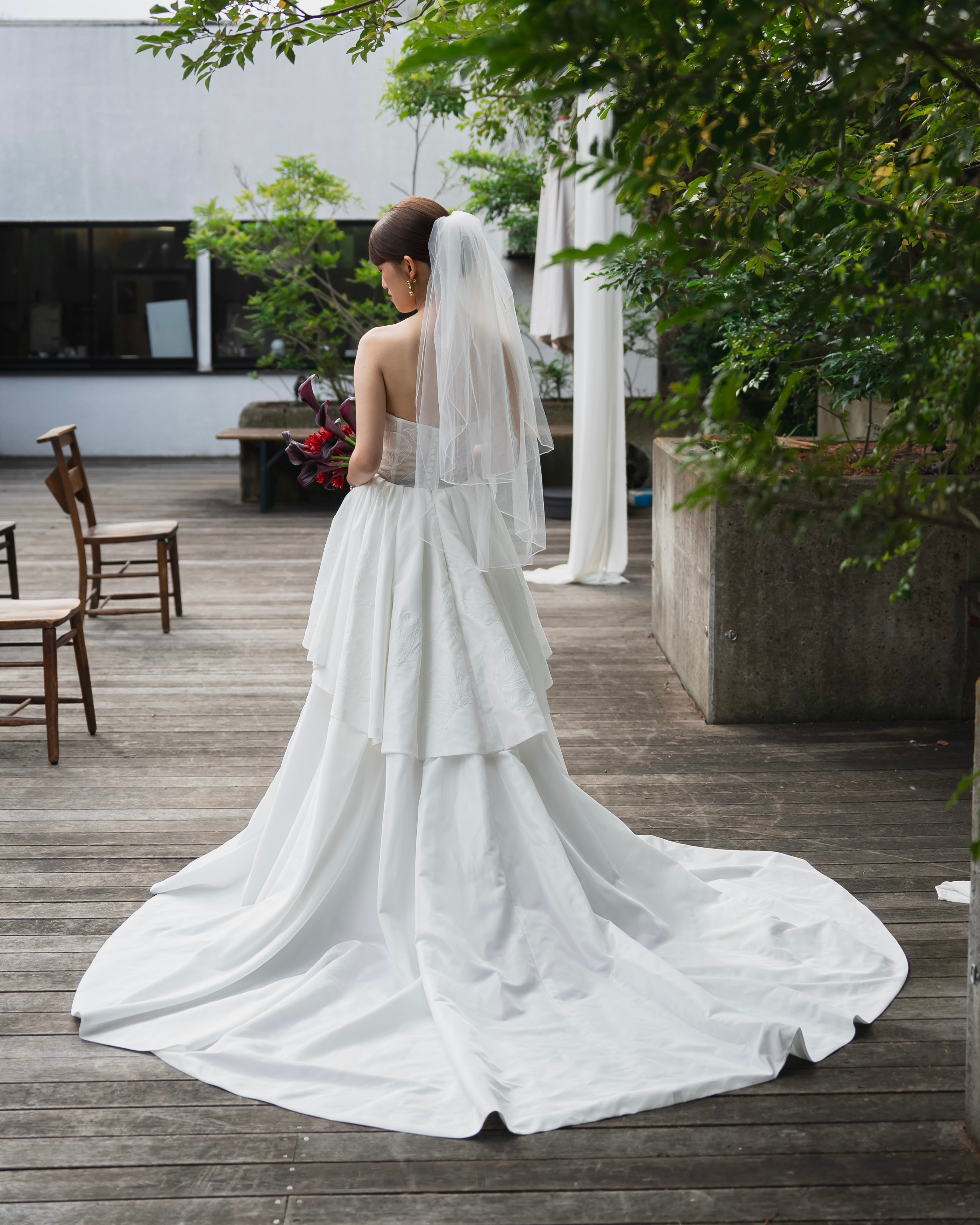 柔らかいチュールにメロウ加工を施し、軽やかながらボリューム感あるウェディングベール。