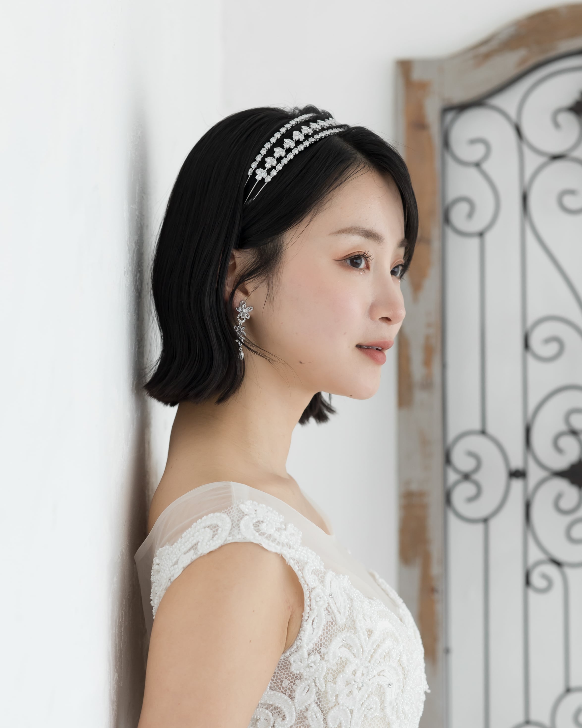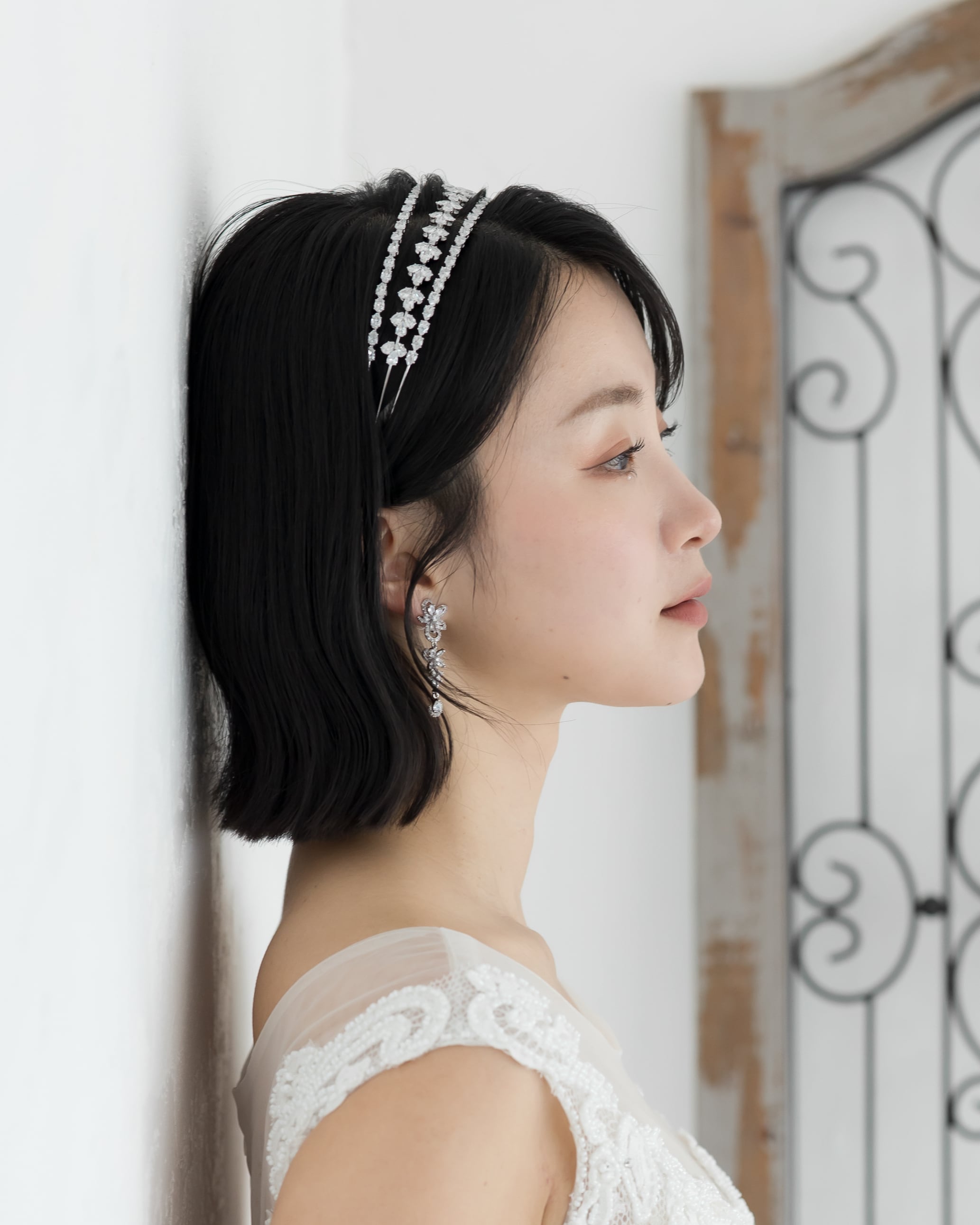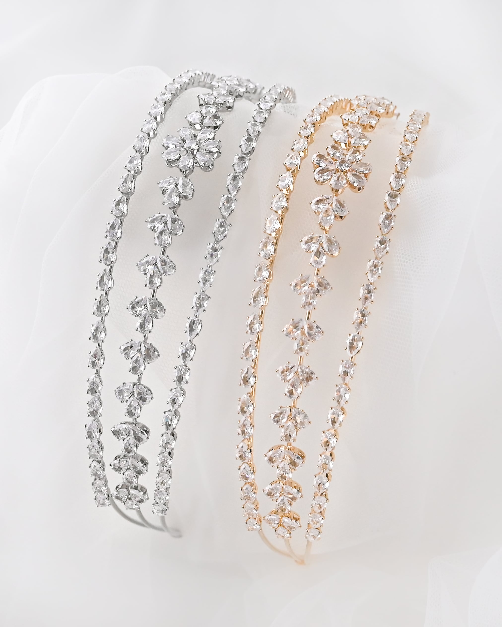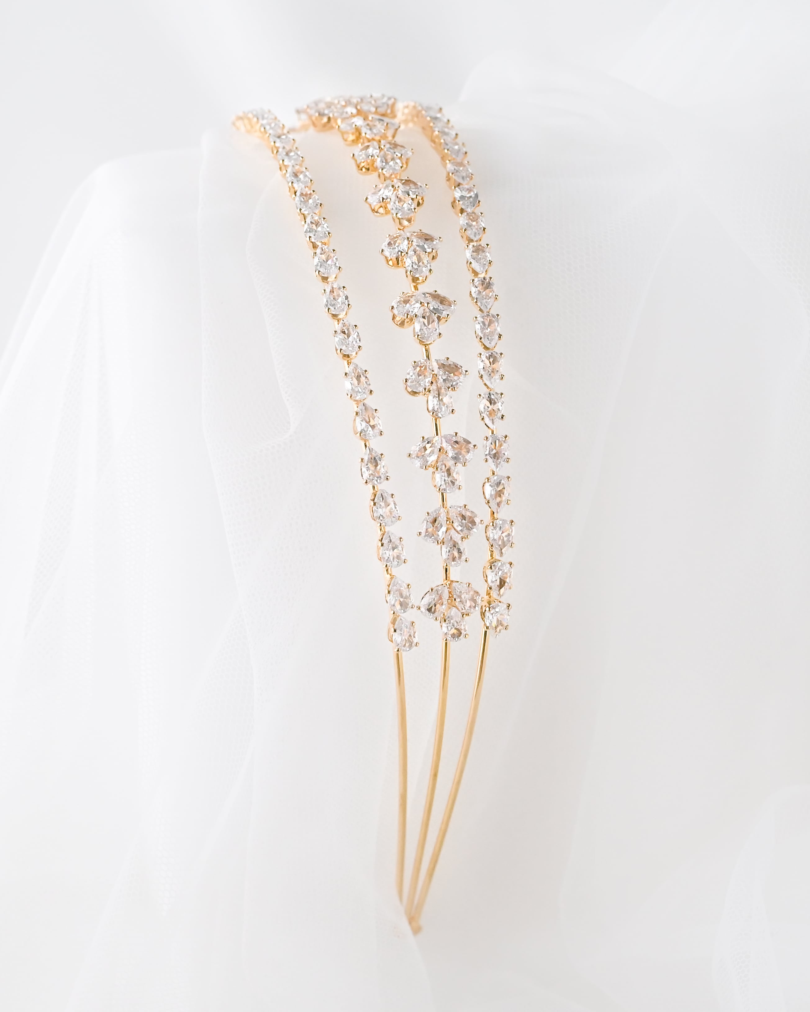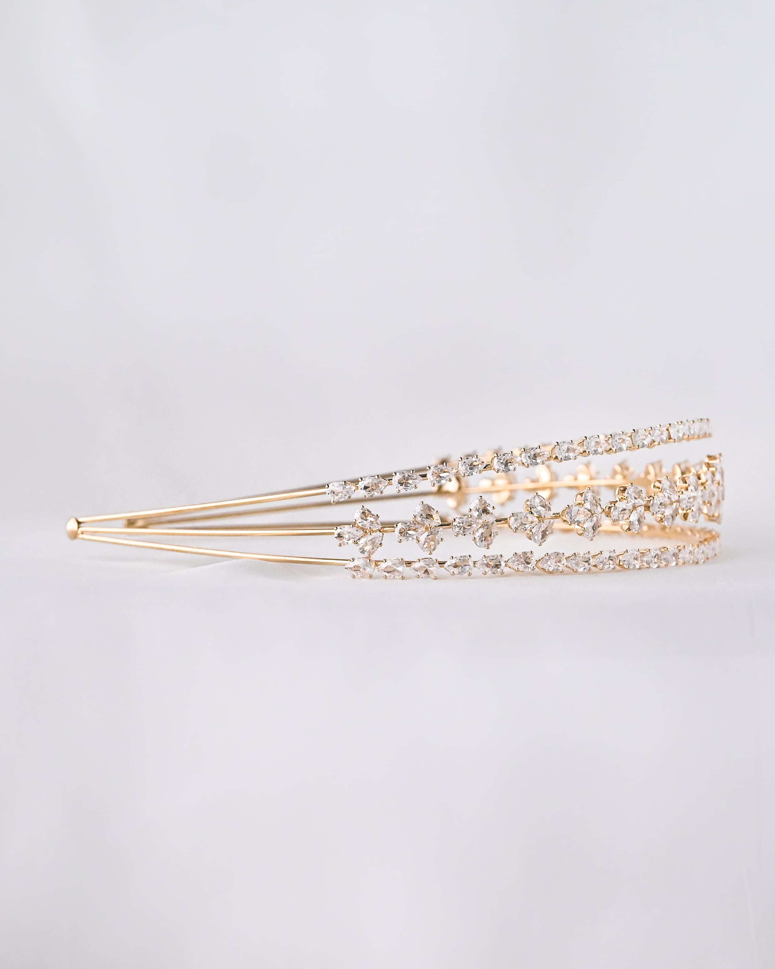 煌びやかなジルコニアストーンをあしらった華やかな3連カチューシャ。