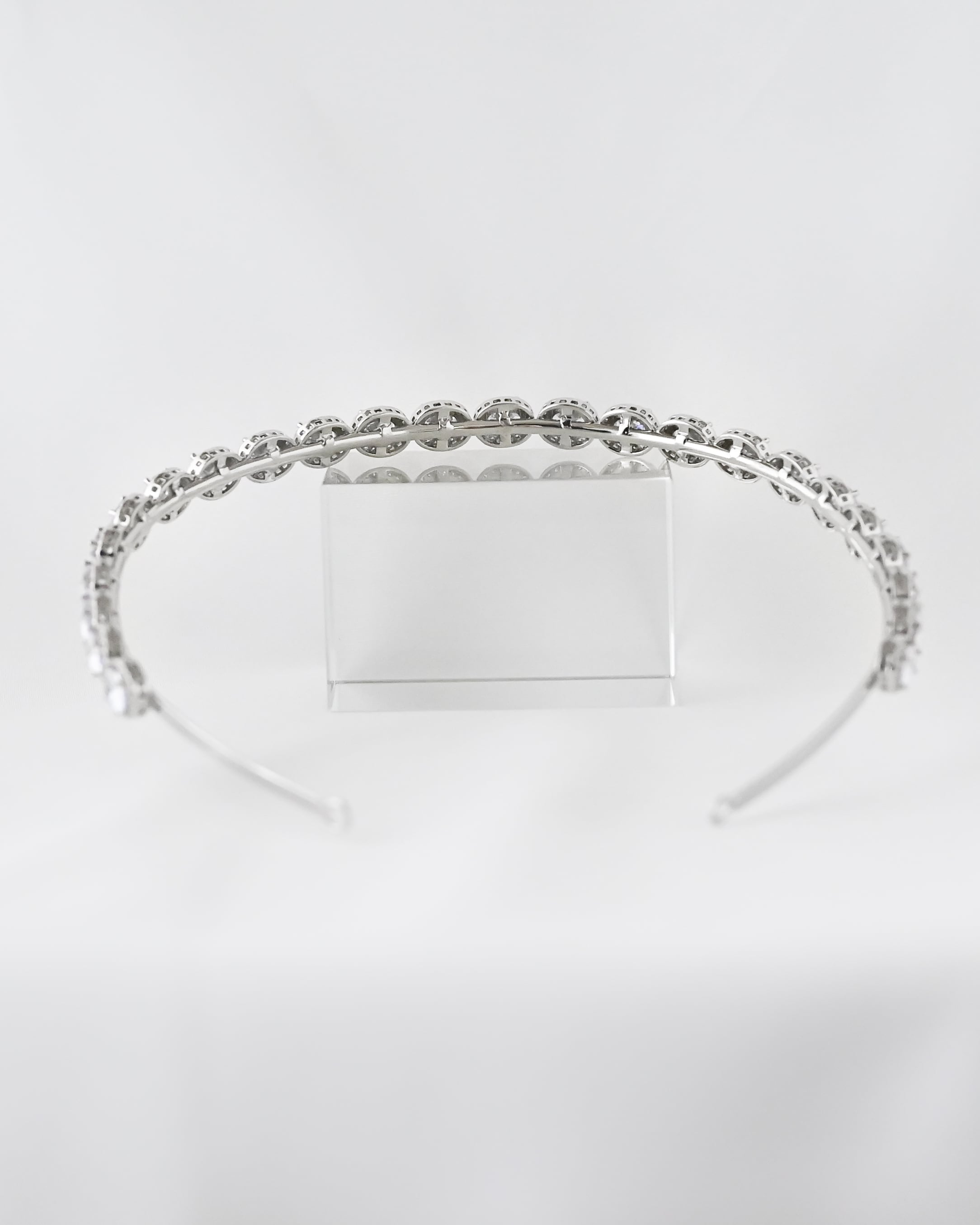 オーバルブリリアンカットのジルコニアストーンで構成されたベーシックながらキラキラと輝く華やかさあるブライダルカチューシャ。