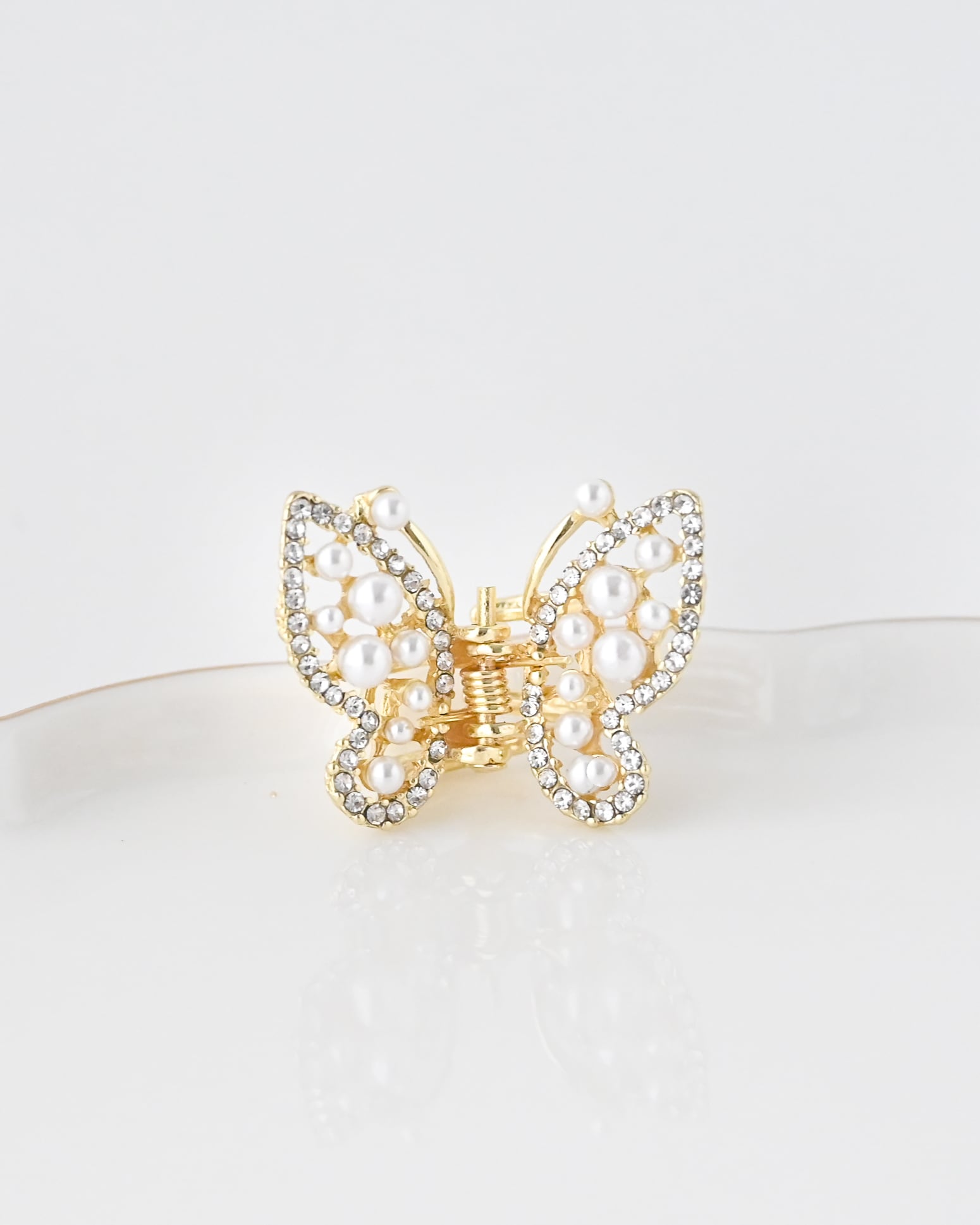パールとラインストーンを散りばめた愛らしい小さな蝶々クリップ3点セット。
