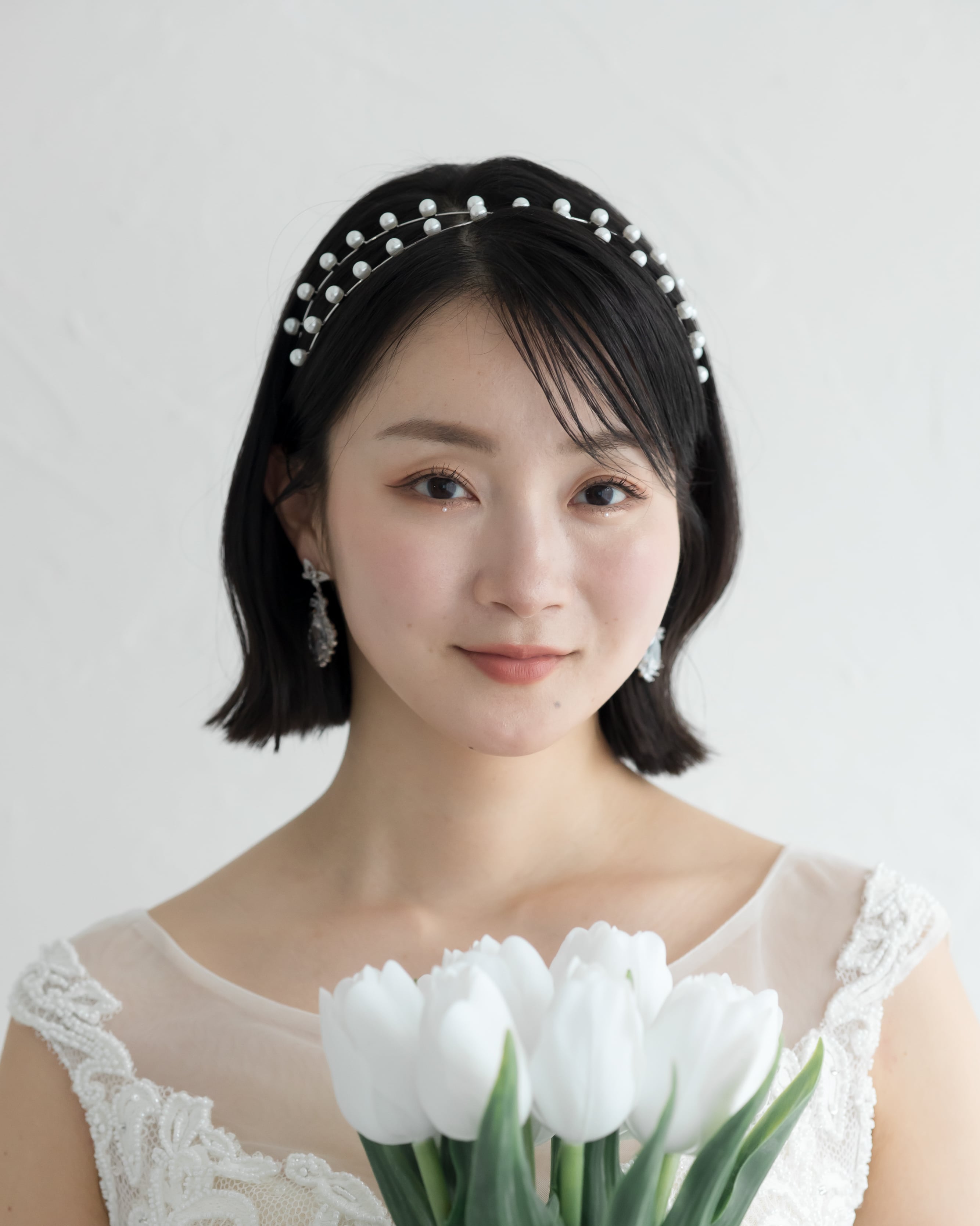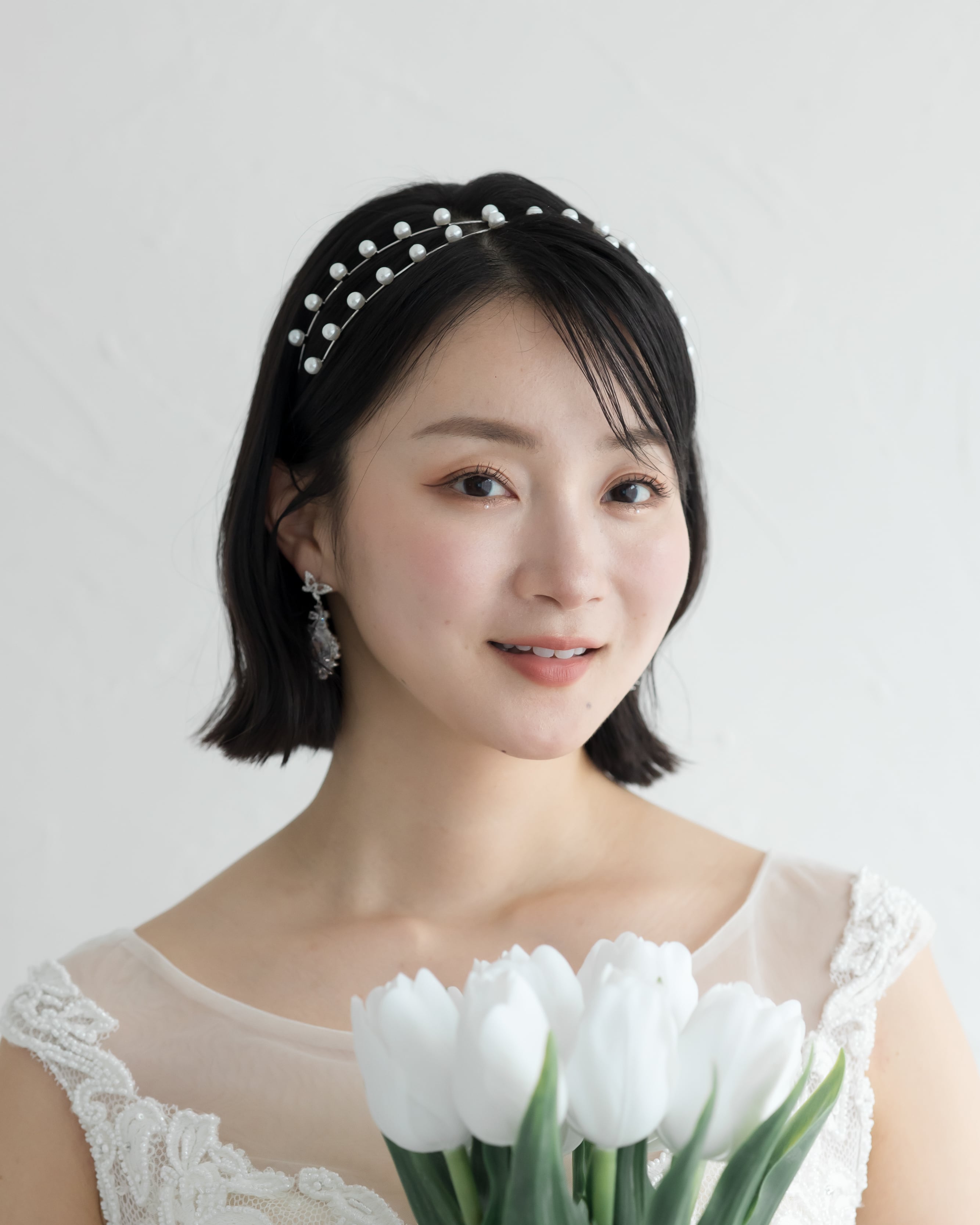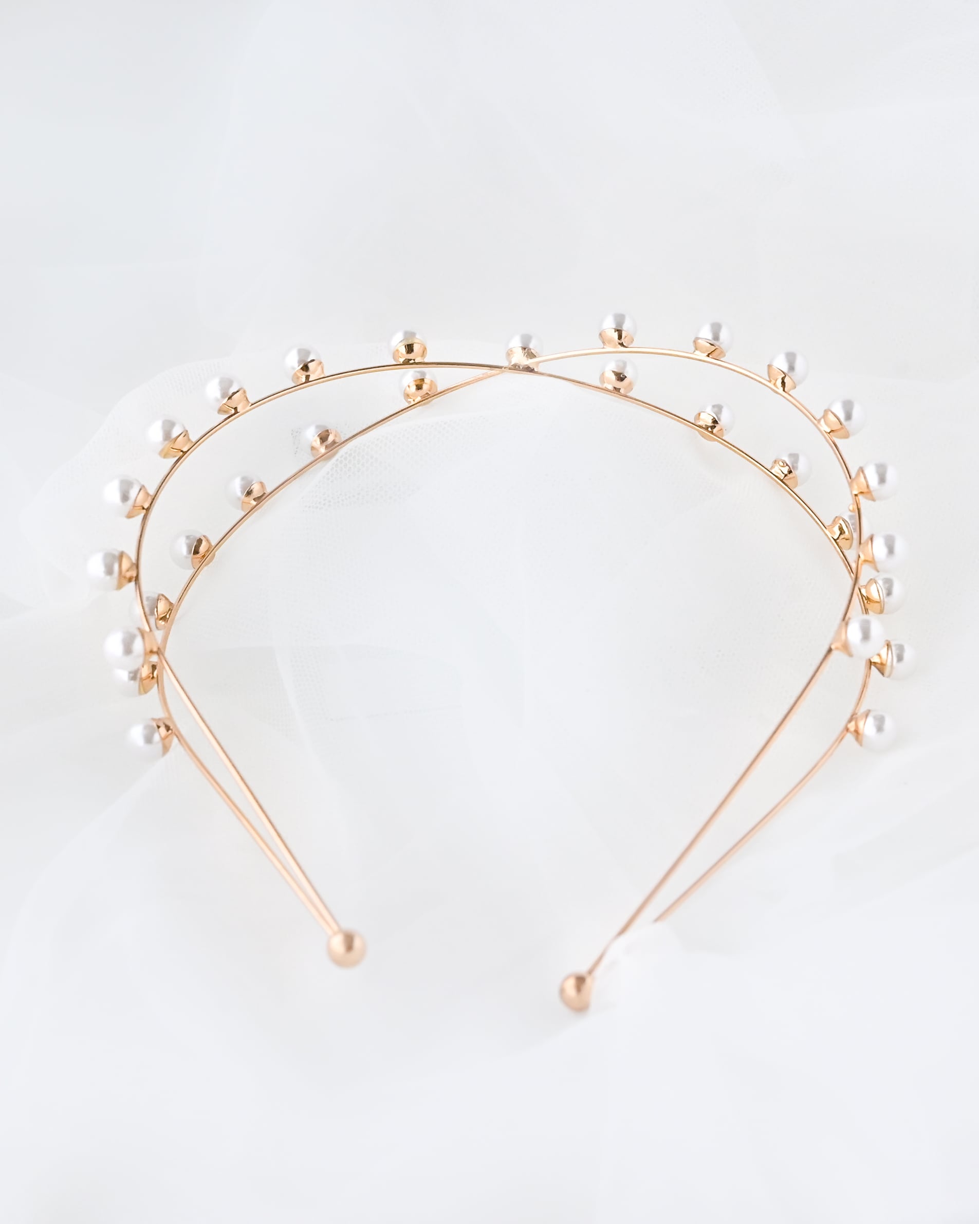 2連クロスブライダルパールカチューシャ【AH2404-05】