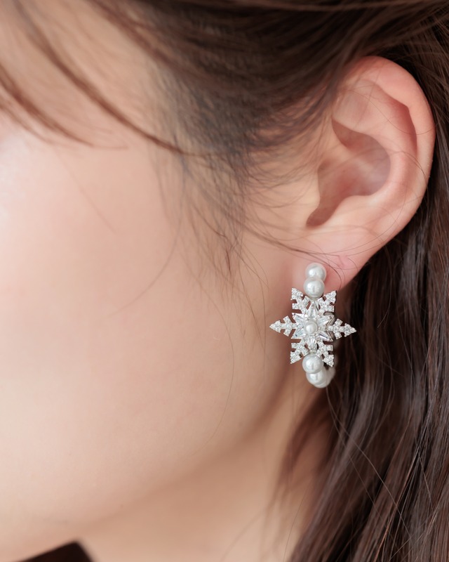 透かし加工を施した大きなお花がフォトジェニックでトレンド感あふれるブライダルピアス。