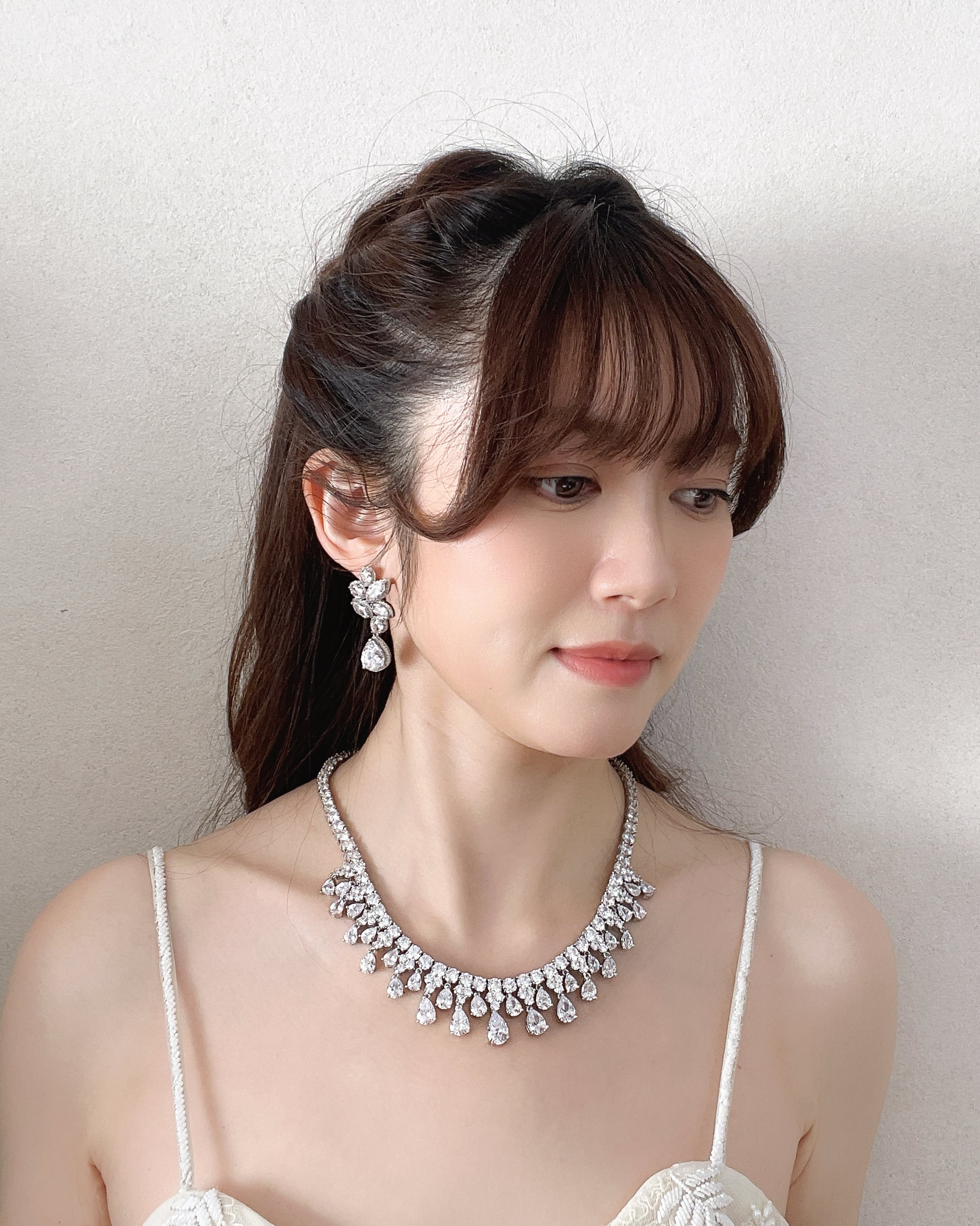 ペアシェイプカットのジルコニアストーンタッセルが華やかでアグジュアリーな雰囲気のブライダルネックレス✨