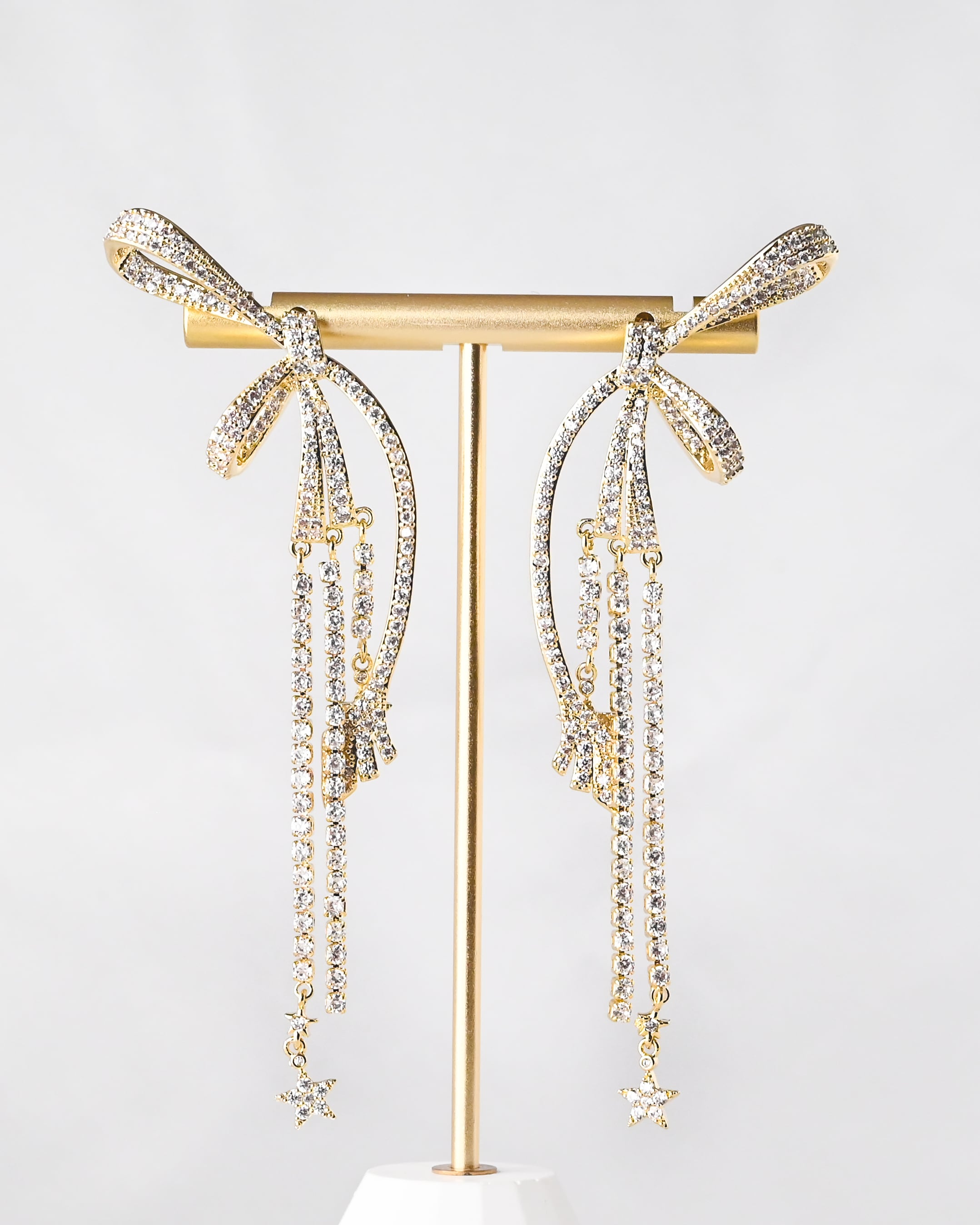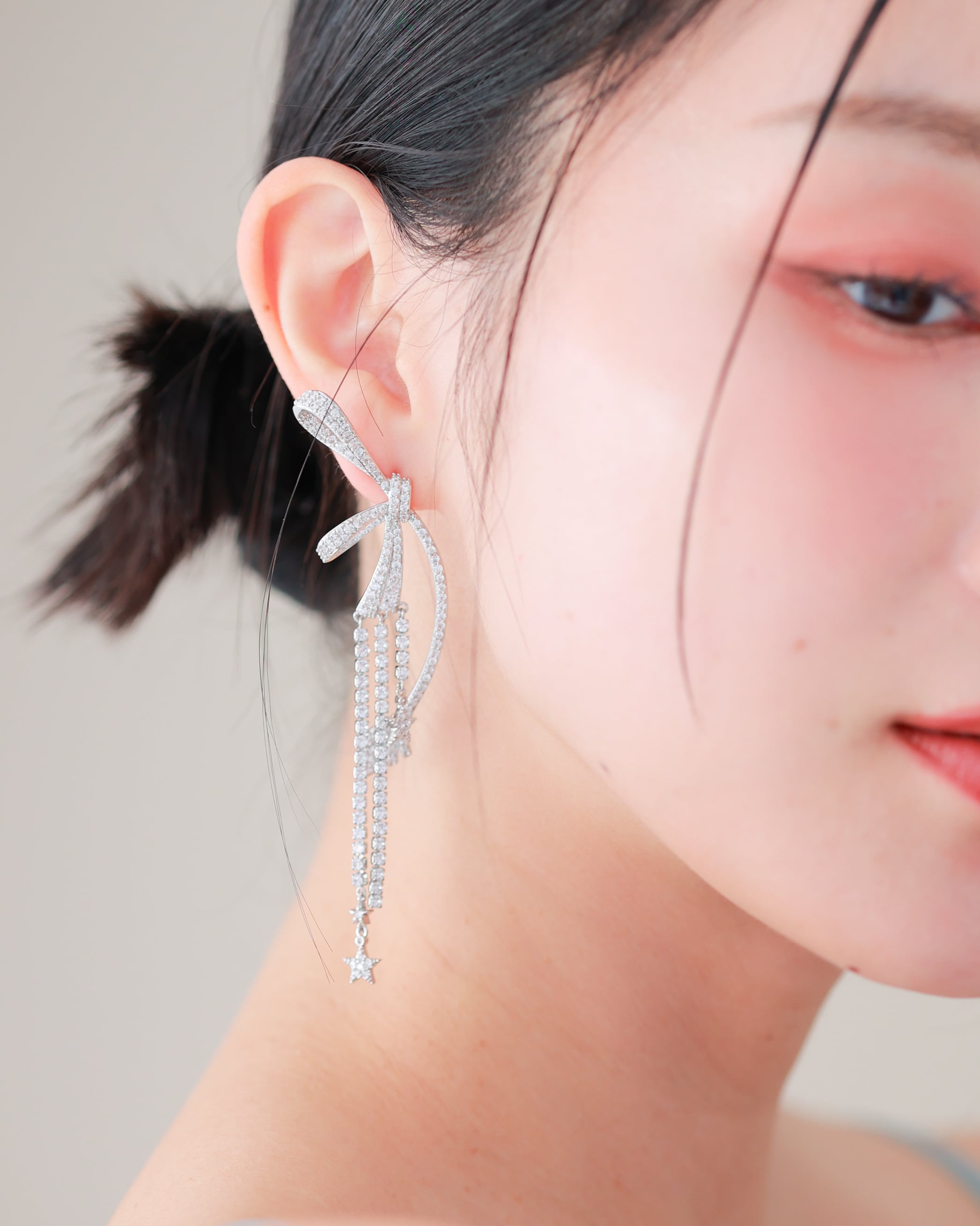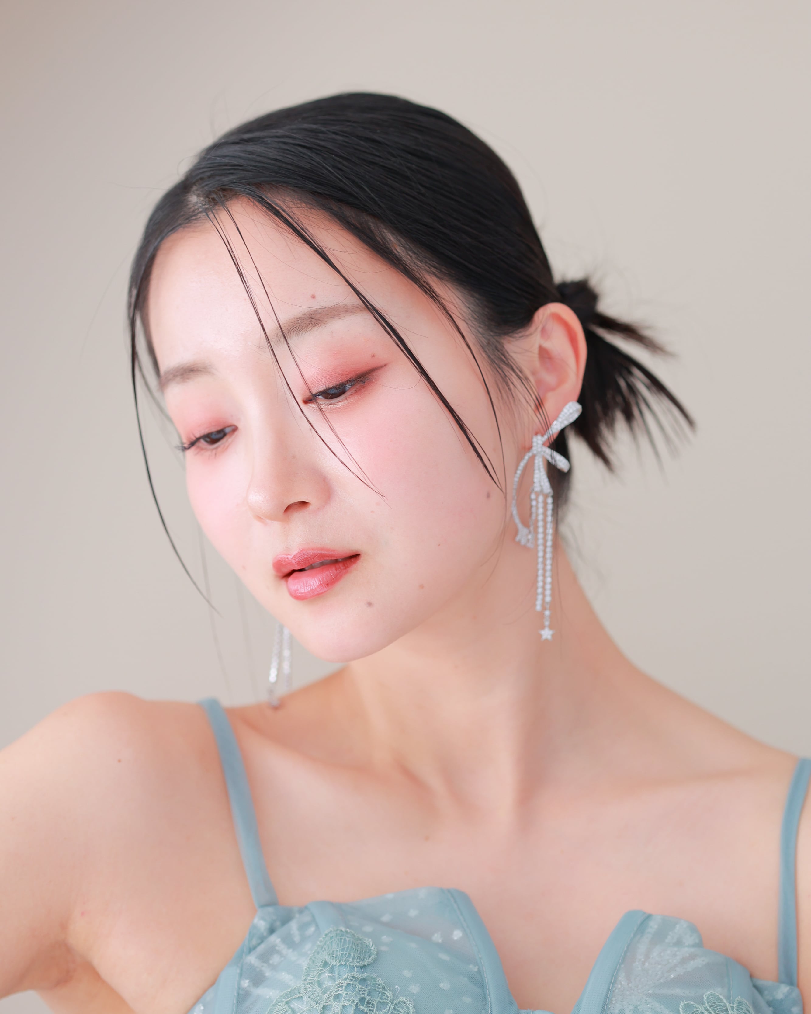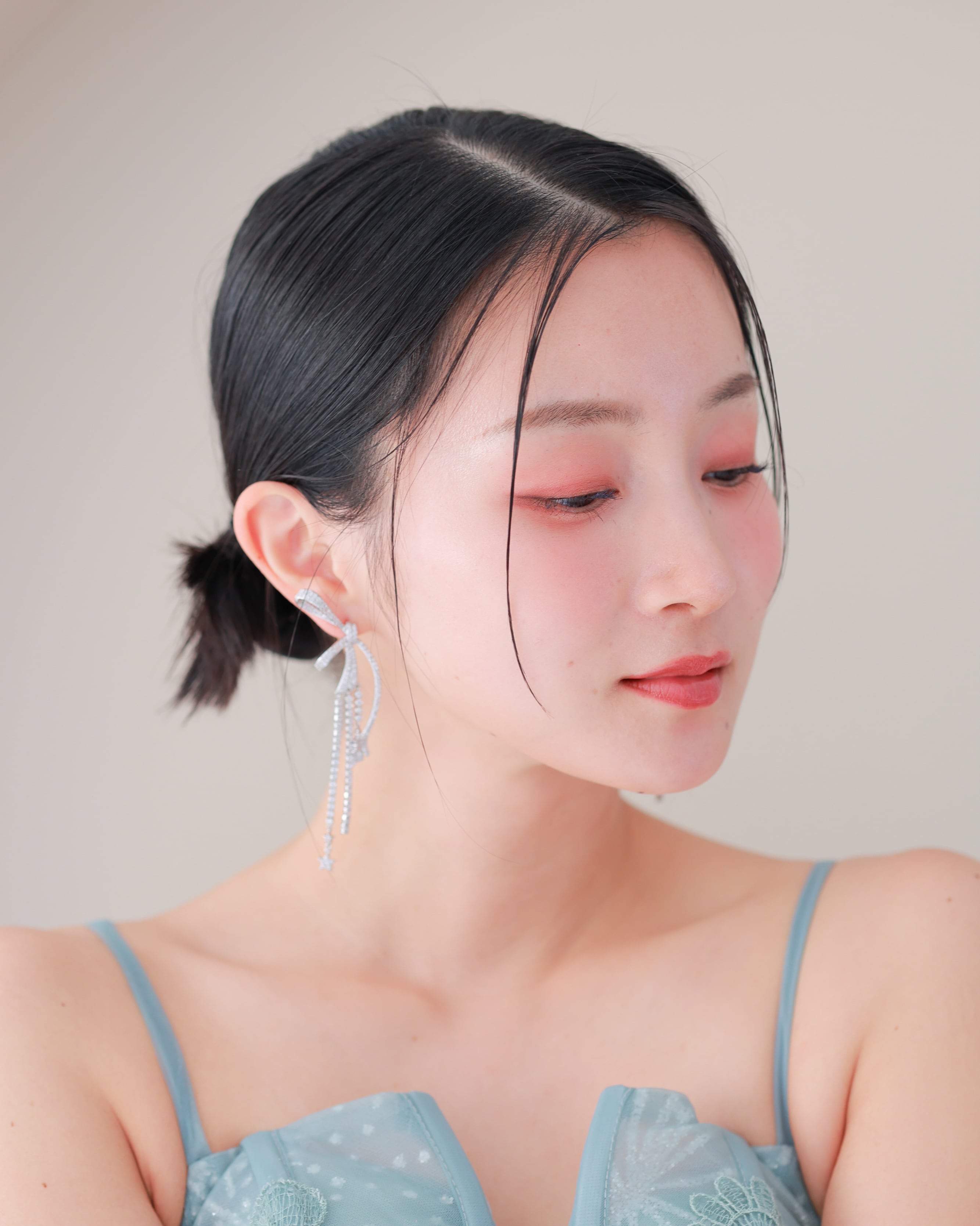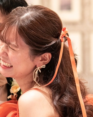 華奢で細身のラインからなる抽象的な印象のリボンをモチーフとしたトレンド感あふれるブライダルピアス。