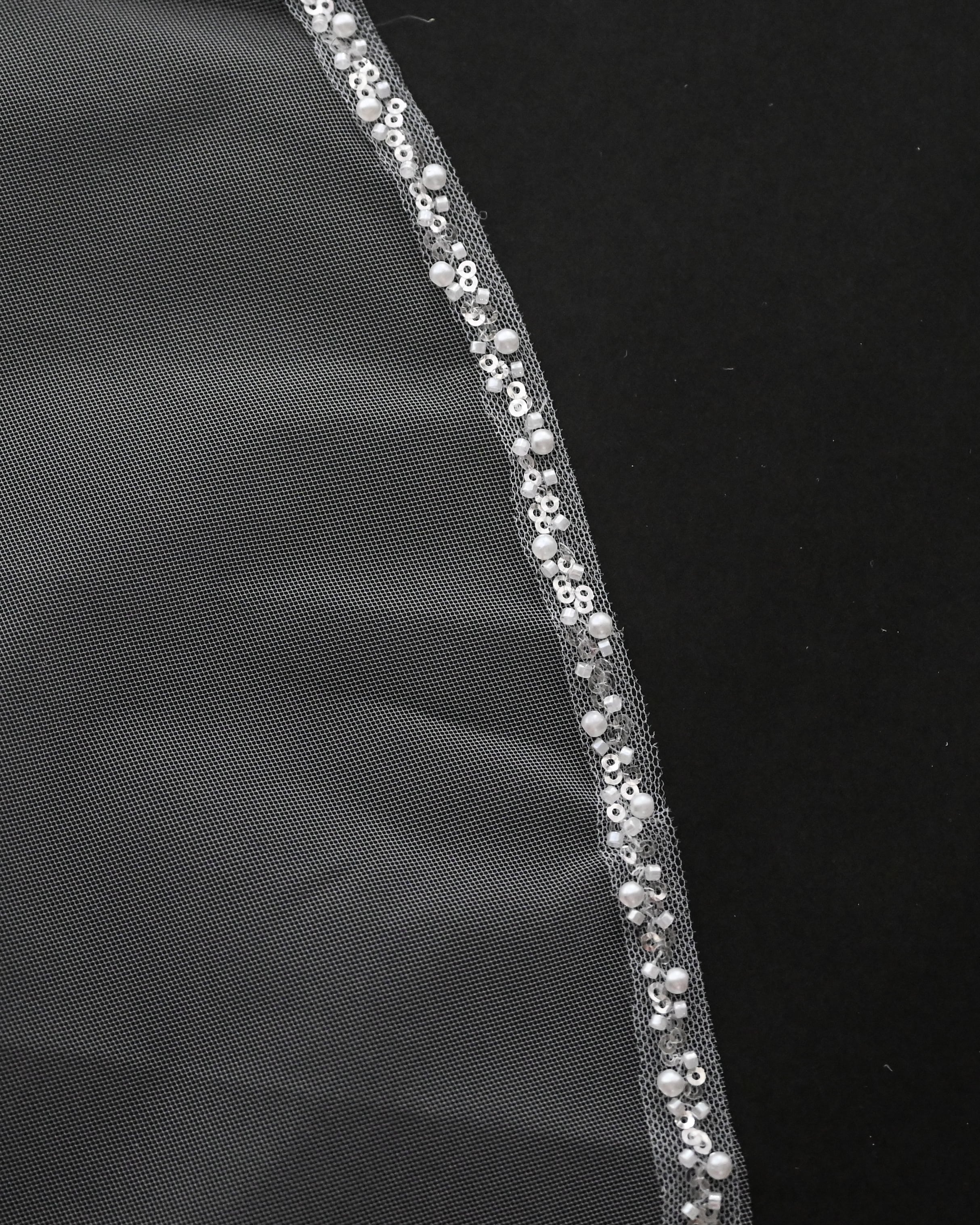 フロントからバックまで縁にパールやビーズ、スパンコールの装飾をあしらったシンプルでいて華やかなウェディングベール。