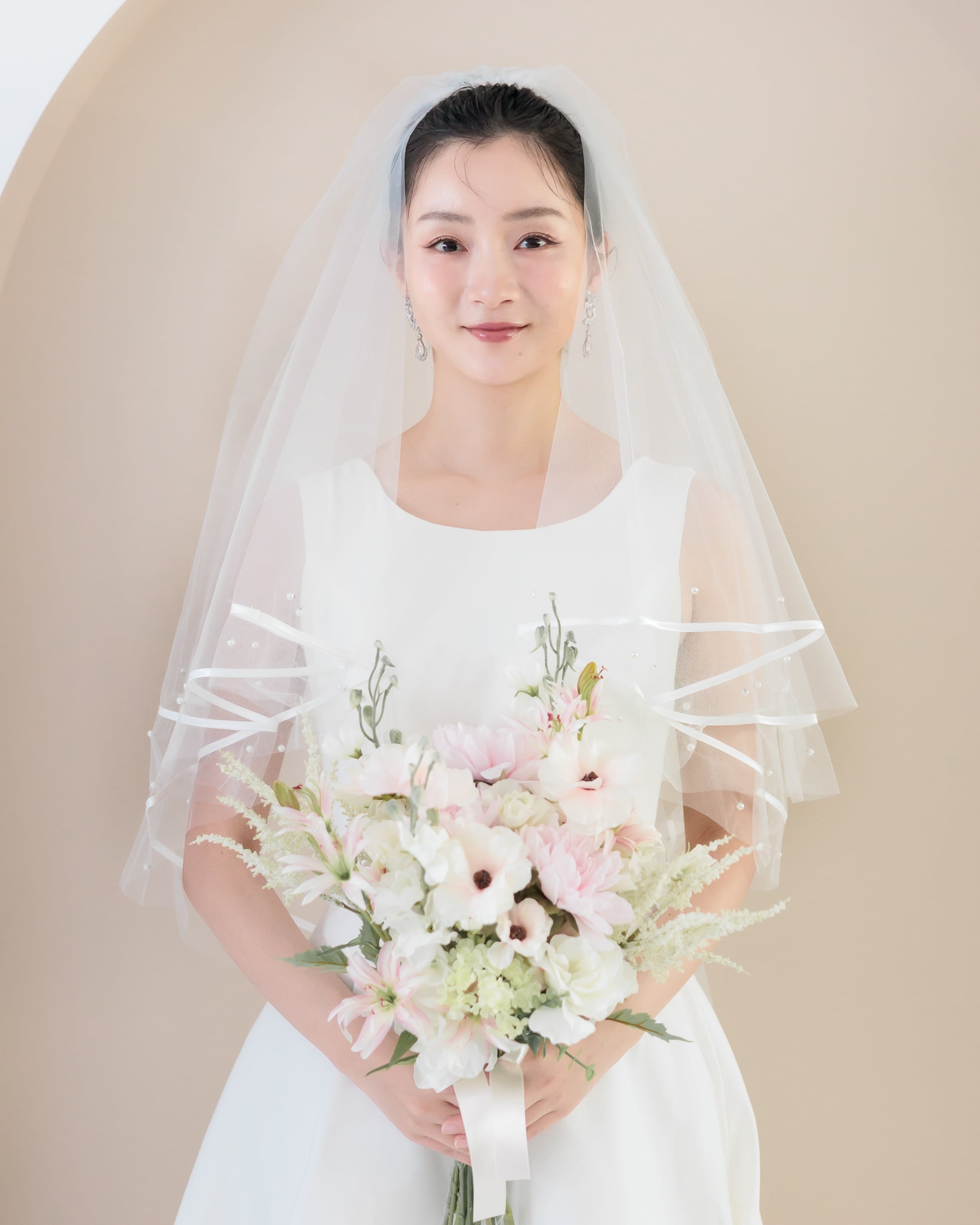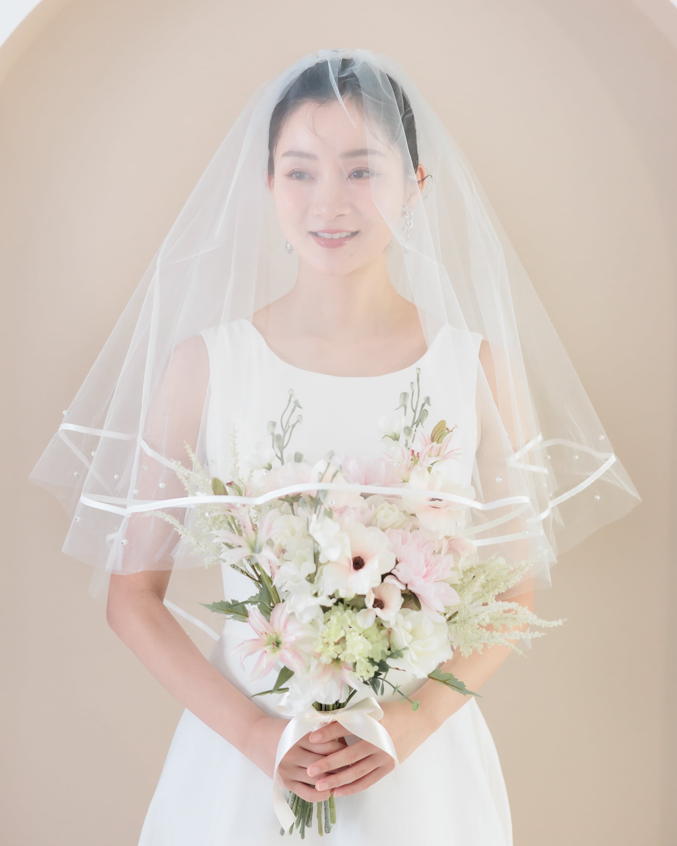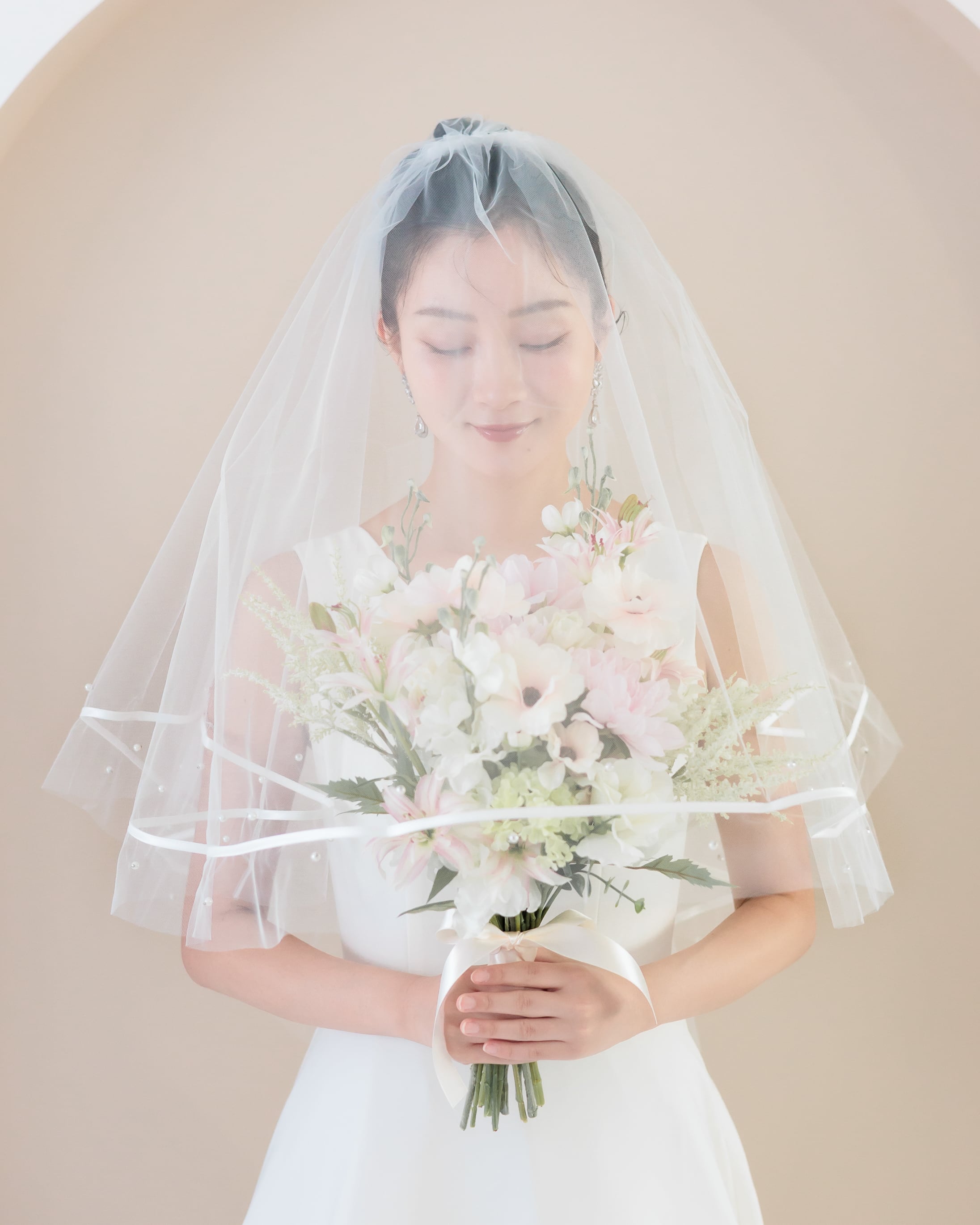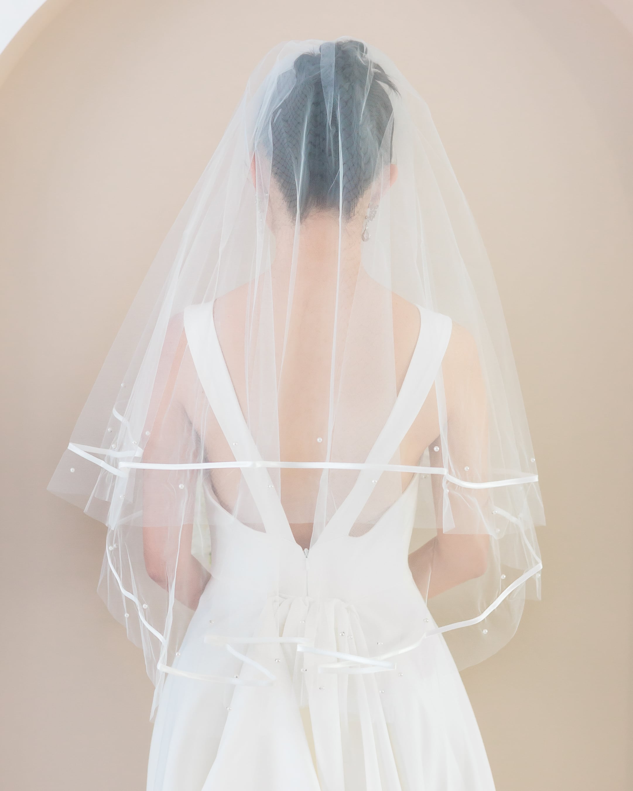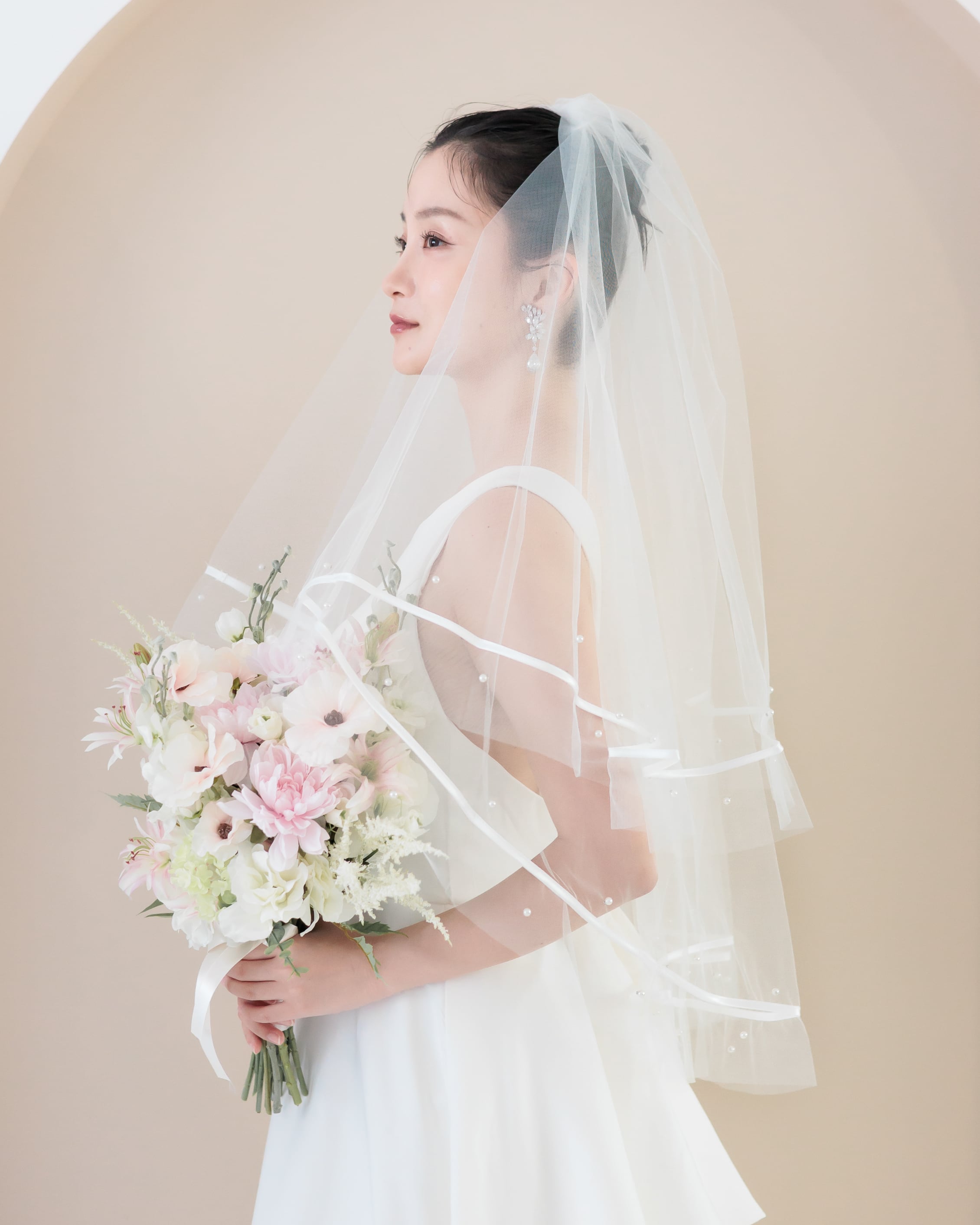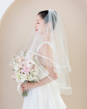 パールリボンラインミディアム丈ウェディングベール【VL2501-04】
